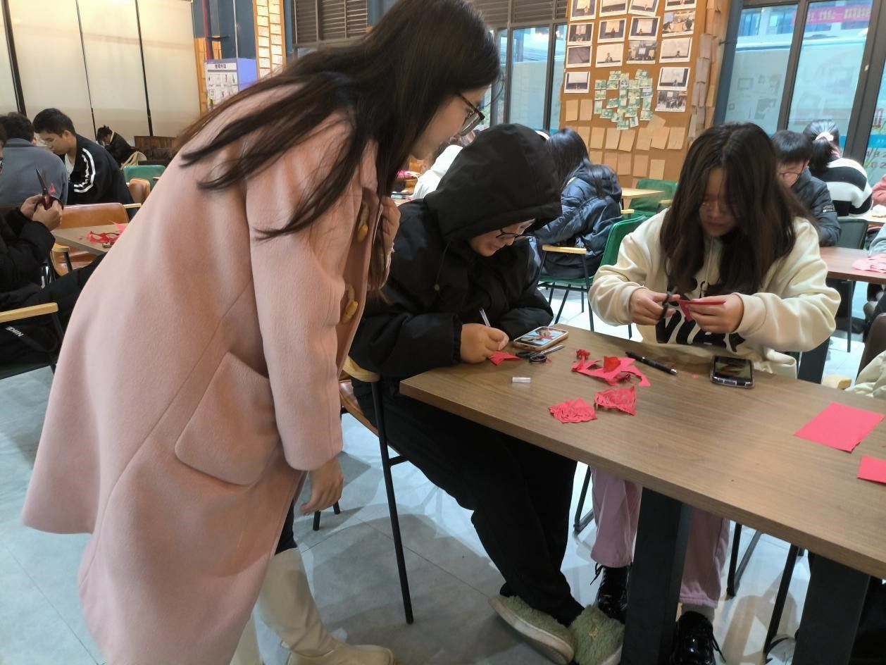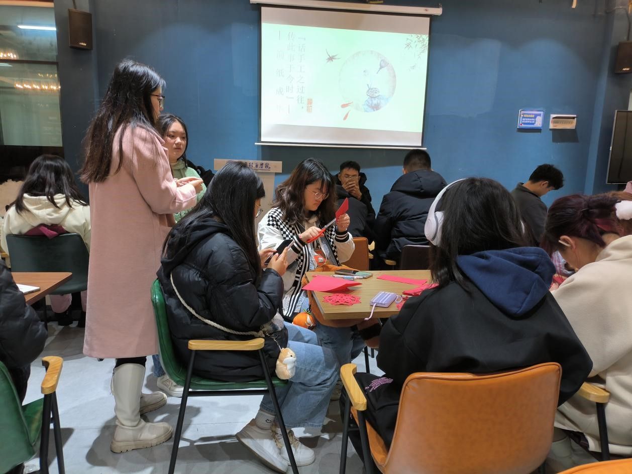 本次活动邀请到DIY手工社指导老师王思熠老师莅临现场,与同学们一同进行手工体验活动。她对剪纸知识进行了补充以及表达了自己的想法,在老师讲解完之后,工作人员给同学们分发材料,在拿到材料后,有的同学若有所思,似在构思自己心中满意的作品,有的同学向老师提出了自己心中的疑问,想让自己的作品看起来更加完美。