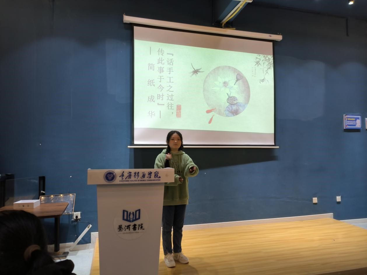 为了让同学们更加了解和尊重传统文化以及它的魅力所在,提高参与者们对中国传统手工文化的理解和认识,促进沟通交流和群体凝聚力,手工DIY社团在12月1日15:00---17:00,在綦河书院二号楼东篱·故事茶馆开展了手工小课堂的活动。