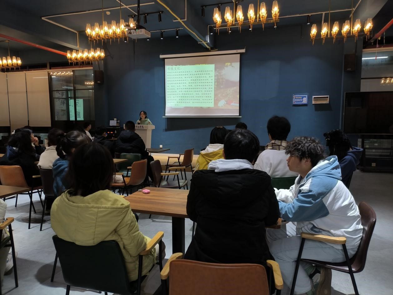 参与的同学到达现场后,由工作人员向他们介绍本次活动的主要内容——剪纸,首先由手工社讲解有关与剪纸的背景,剪纸有着2000多年的历史,所沉淀的韵味吸引着在场所有人,同学们脸上满是好奇与探索。