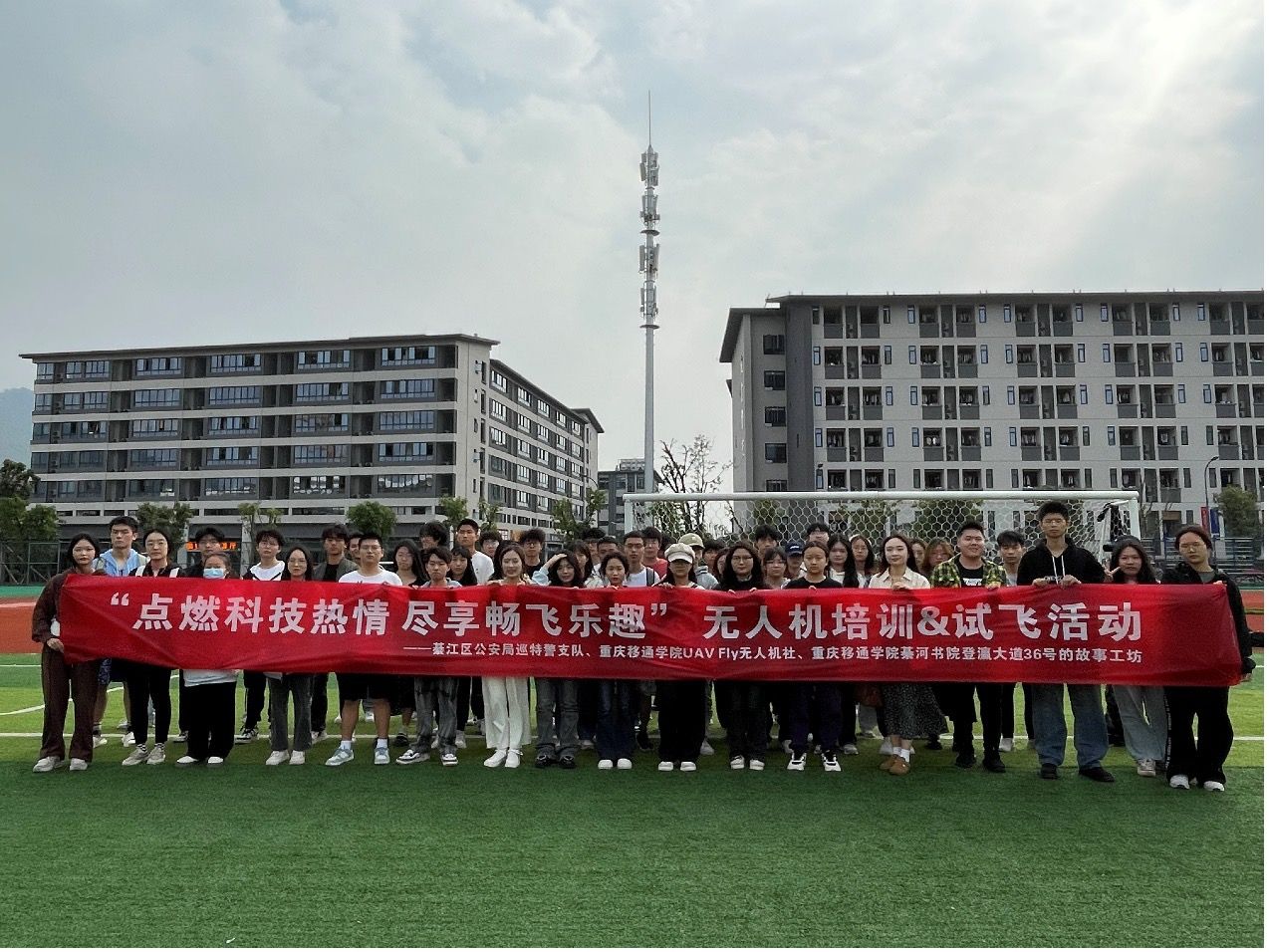 在科技的浪潮中,无人机技术以其独特的优势,正在改变我们的生活方式和工作方式。为了激发同学们对科技的兴趣,提升无人机操作技能,UAV fly无人机社于2023年12月1日,在操场开展了“点燃科技热情,尽享畅飞乐趣”无人机培训及试飞活动。此次活动特别邀请了綦江区禁毒支队参与。