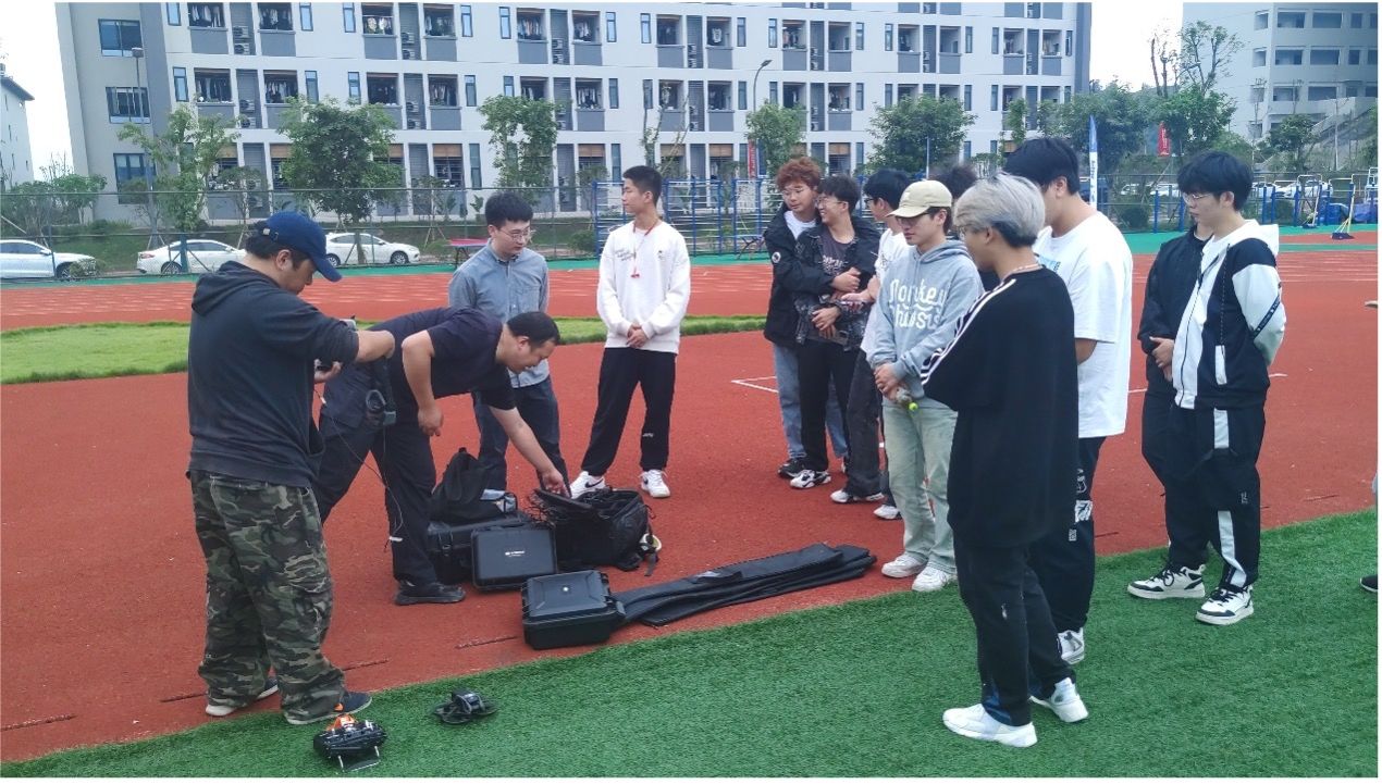 活动伊始,由綦江区特警处的金诚警官通过实际案例分析,为同学们全面讲解了无人机基本操作理论,以及无人机飞行的相关法律法规及安全管理知识。通过理论授课,同学们对无人机的工作原理、基本操作、日常维护保养、应急处理操作等知识和使用技能有了深入全面地了解,业务知识和业务能力得到了进一步提高,为后期实践打下了良好基础。