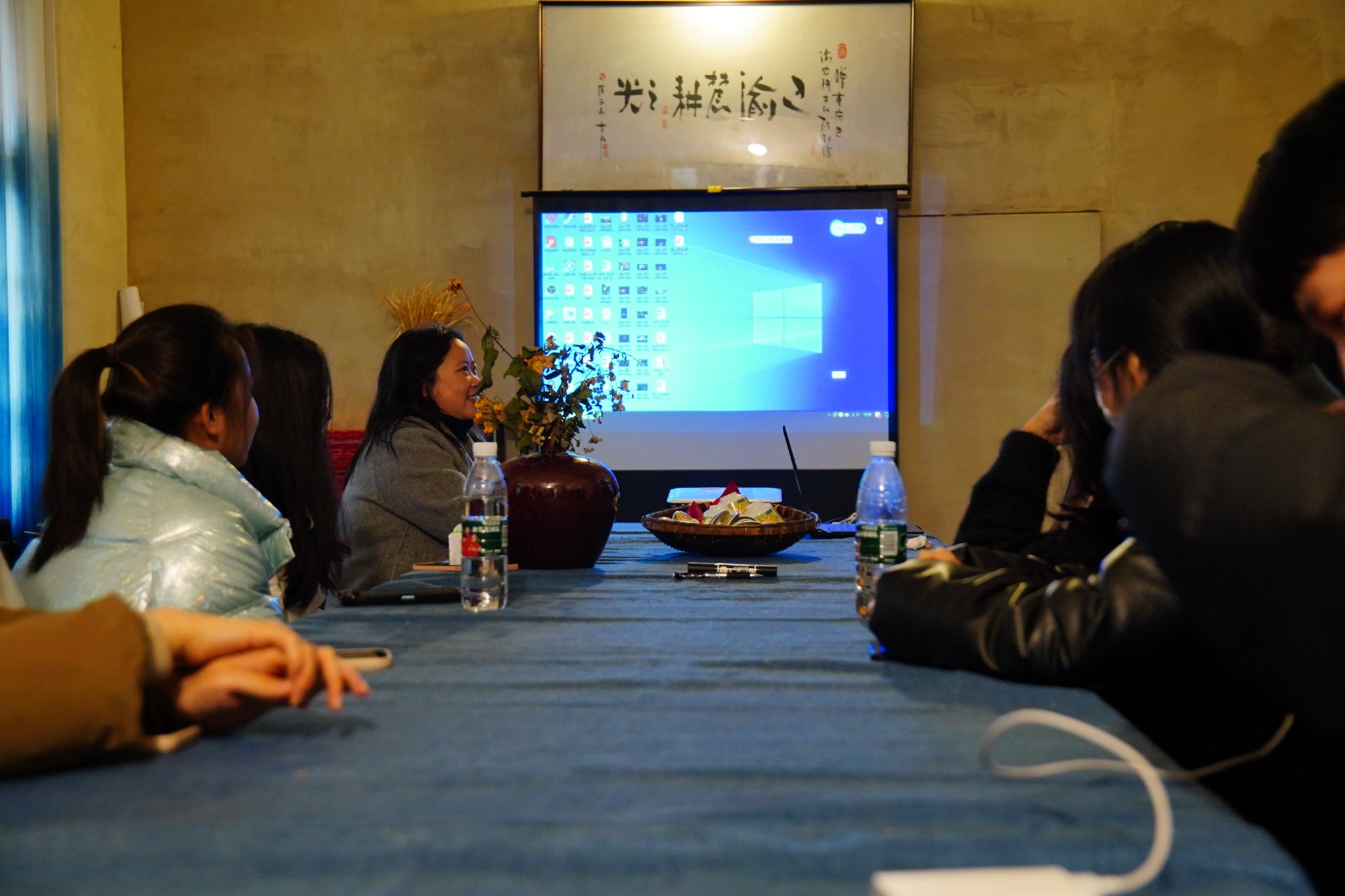 活动的最后流程,刘刚馆长以放映“乡思”主题的几部影片来作为结尾,同学们安静观看,对一天的经历与感悟形成总结与思考,放映结束后,吴慈荷老师鼓励大家分享考察的收获。每位同学轮番讲述自己的感受,表示亲手触摸到那些古老物件,并伴随着馆长的生动讲解,与先辈对话,不仅回忆自己儿时往事,也切身感受到巴渝农耕文化的魅力,并萌生出农耕文化留下与传承十分必要的感悟。