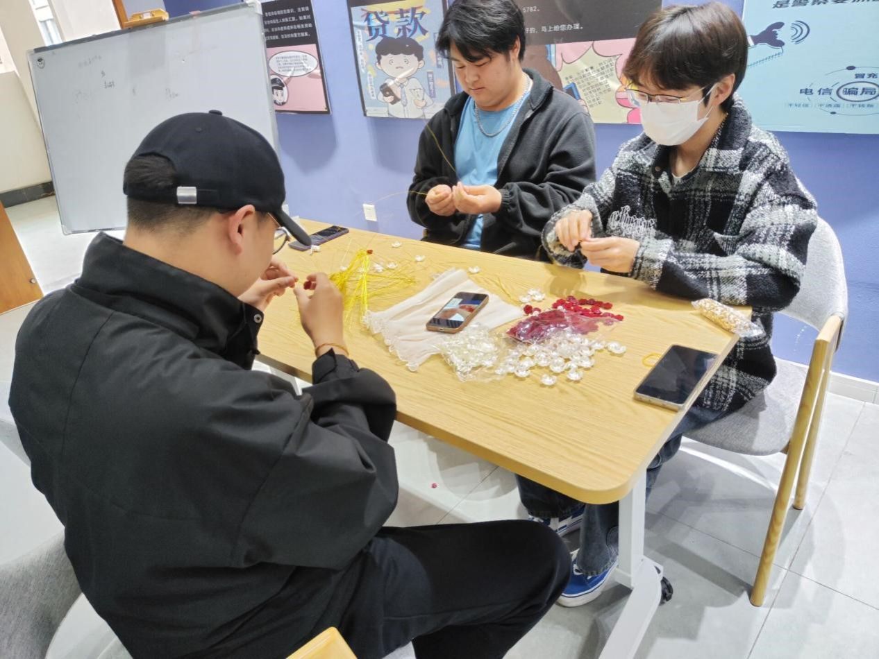 同学们自由组队一起合作完成作品,看着桌上摆放的工具,他们都已迫不及待的想自己动手制作。有人熟练的按照步骤制作,有人还在研究每一步的要求,每个人能力不同,进度也大相径庭,但是最后每个参与者都做出了属于自己的花束。过程中手工社成员们还现场进行了手工艺制作的教学和互动。他们耐心地讲解着每一个步骤,让参与者亲手体验手工艺制作的乐趣。这种教学方式不仅让同学们更加深入地了解了手工艺的魅力,同时也激发了他们对手工制作的热爱和尊重。看着原本杂乱的原料经过自己的双手焕然一新变成了美丽的花束,同学们心中的自豪和骄傲油然而生,这种成就感是独一无二的。