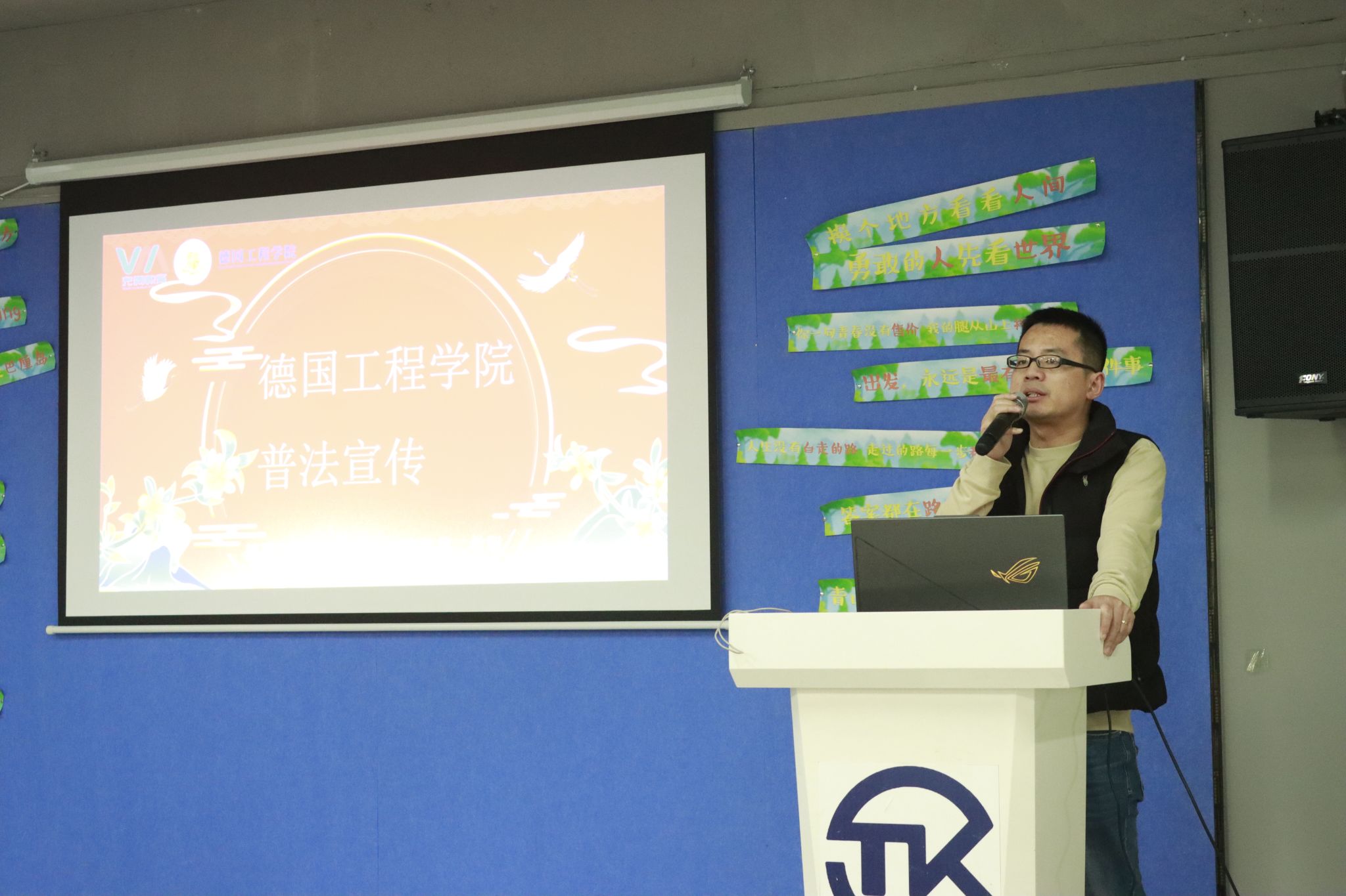 活动伊始,德国工程学院李伟光副院长发表了致辞并欢迎范部长的到来。李院长强调了法制教育的重要性,并鼓励学生干部们积极参与普法活动,增强法律意识,为构建和谐社会贡献自己的力量。