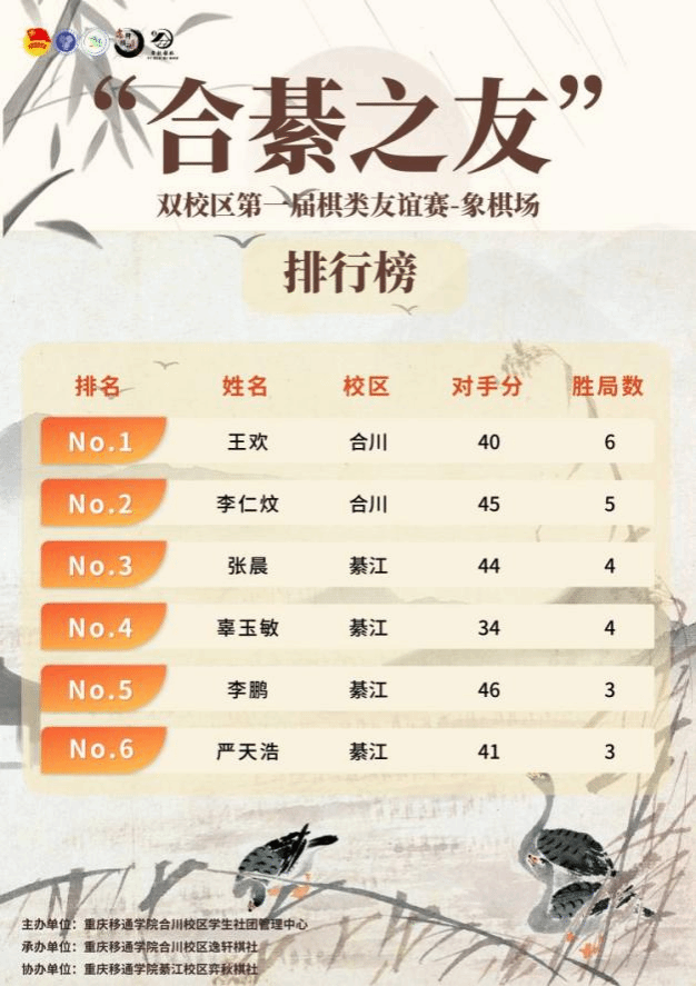 3月30日,由我校主办、双校区棋类社团联合承办的“合綦之友”——重庆移通学院双校区第一届棋类友谊赛在重庆移通学院(合川校区)完美收官,打出三月漂亮Ending!