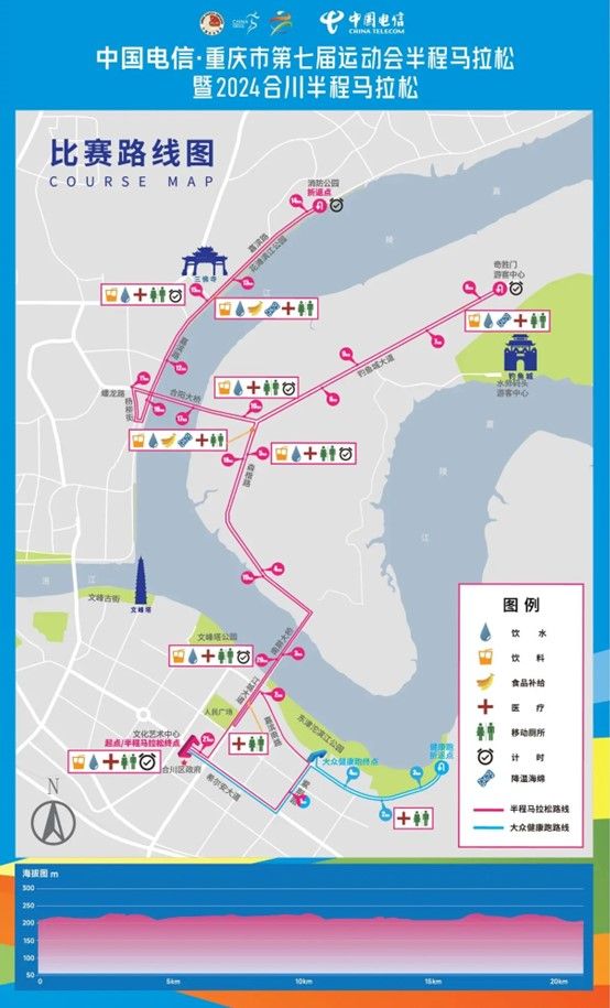 清晨7:30,随着一声枪响,2024合川半程马拉松在合川区政府东北门旁的希尔安大道上激烈开跑。作为重庆市第七届运动会的首场大型活动,此次马拉松赛事规模宏大,吸引了近8000名参赛者,其中半程马拉松项目就有3000人参与。赛道途径了南屏大桥、钓鱼城大道、合阳大桥、花滩国际新城等多个合川标志性地点。在嘉滨路段,参赛者们迎着江风奔跑,清新的空气令人心旷神怡,同时江风也带来阻力,给参赛队员增加了挑战。