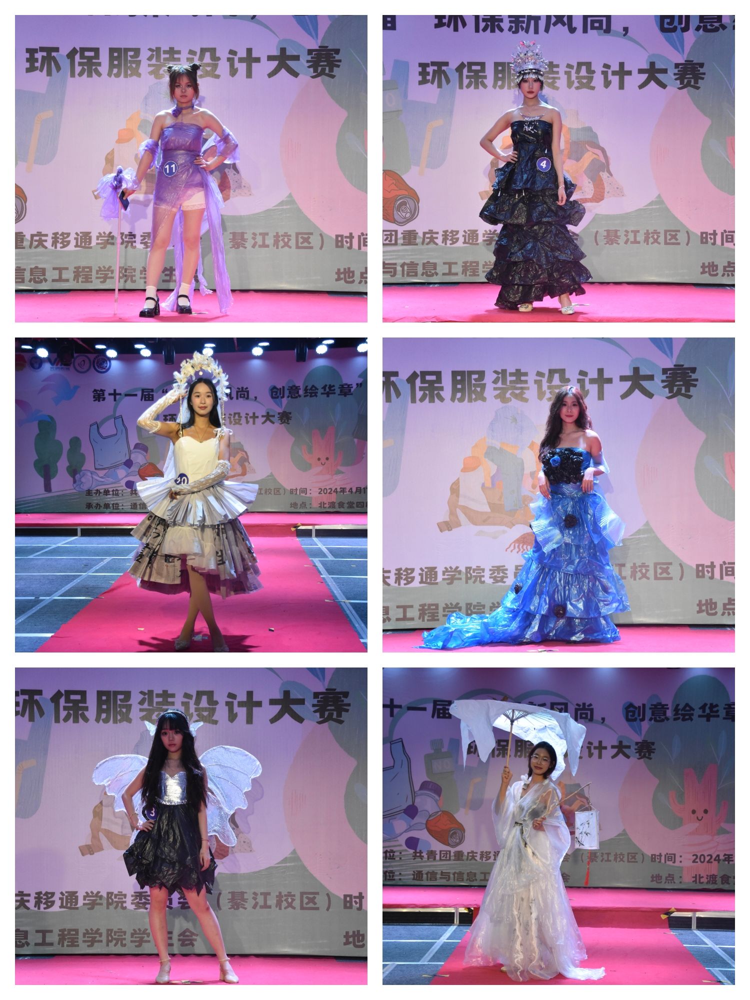 为提高大学生对环境保护和可持续时尚的认识,鼓励创新和创造力,同时培养大学生的穿搭与审美水平。3月18日至4月17日,由共青团重庆移通学院委员会(綦江校区)主办、通信与信息工程学院学生会承办的第十一届“环保新风尚,创意绘华章”环保服装设计大赛顺利开展。通过将环保理念与时尚元素巧妙融合,创作出既美观又富有内涵的环保服装作品,再在灯光T台之上展示作品设计理念与参赛队伍风采,既是一场视觉盛宴的呈现,又是一种环保意识的引领。