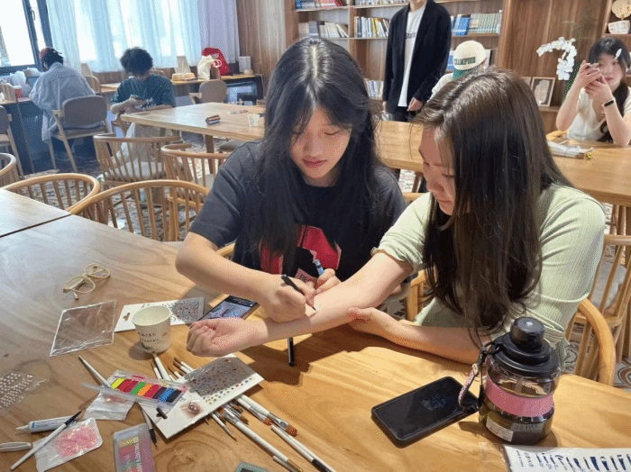 为让春天的气息洋溢在每一个角落,同时为广大化妆爱好者提供一个展示自我、交流学习的平台,Colorful美妆协会于4月19日在观云书院芒种·华文书吧举办了一场别开生面的彩绘活动。春天象征着生机、活力与希望。春日妆容的创作不仅仅是技巧的展现,更是一种艺术的表达, 通过明亮的色彩和自然清新的妆容效果为人们带来了春日般的美好与希望,传递着一种积极向上的心态与信念,让更多人感受到“春天”的气息和生命的活力。同学们也为自己打造一幅独具特色的春天妆容,创造自己的艺术品,自我疗愈,诠释对春天的理解与热爱。希望更多同学在这个明媚的春天,不妨也尝试一下不同的妆容,让自己成为春天里最靓丽的风景。未来Colorful协会也将持续开展此类活动,用彩妆将美好定格!