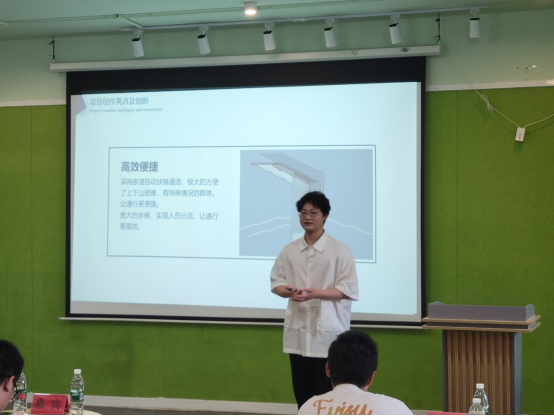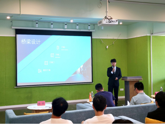 首先由先疯队做综合答辩,他们以无损设计方法为主,通过设计交通标识、改变车道牵引方向、增加掉头指示,达到优化道路设计提升校园道路的通行能力的目的。紧接着,移通陆路队带来聚能环高架桥、北鱼高架桥两套设计方案,巧妙连接缤果城前的T字形路口以及南北校区,桥梁设计精妙,不仅保证了学生通行便利,也使得桥下的车辆可以正常行使。