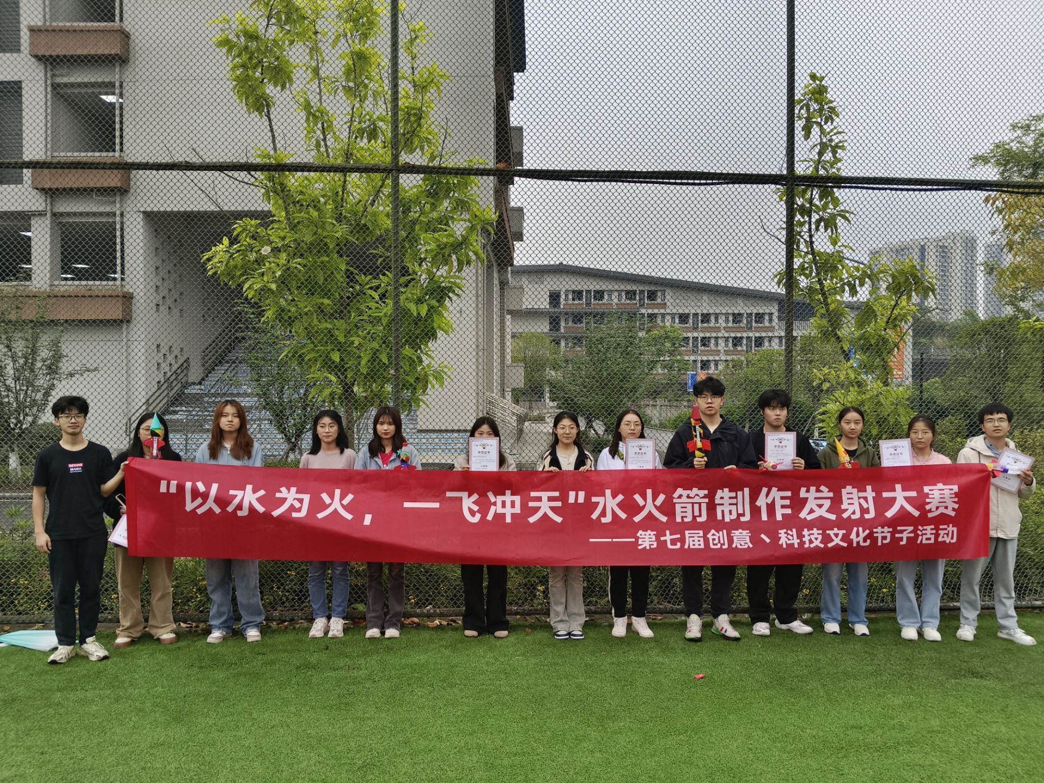 智能工程学院科技活动部于4月24日下午四点在双栀足球场顺利举行第七届创意·科技文化节子活动“水火箭”制作发射大赛。本次活动目的在于将生活科技、创新精神融入校园,培养同学们的科学素养、创新精神和实践能力,发挥主观能动性,提高同学们的动手能力。