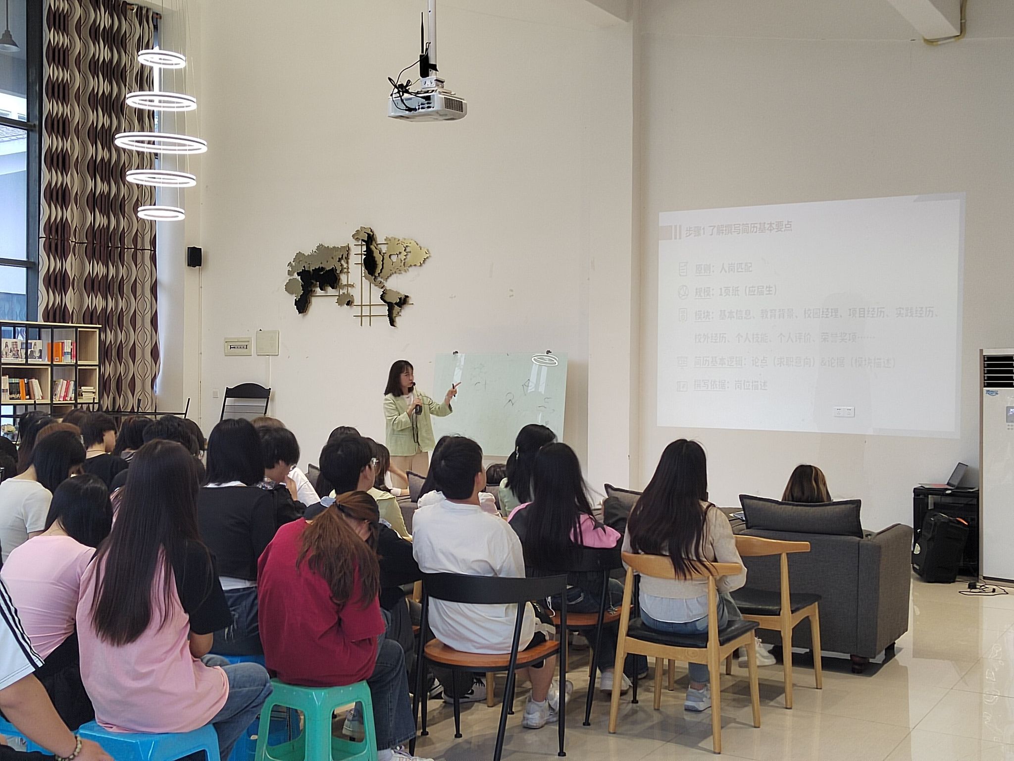 讲座接近尾声,付海明老师对此次讲座进行最后的总结,她强调制作一份好的简历需要同学们认真思考和精心准备,希望大家能够在未来的求职过程中取得成功。通过付海明老师的讲解与指导,不仅提供出实用的求职简历制作指导,也极大增强同学们求职信心。通过此次讲座,同学们不仅更深入了解简历的制作,也对未来的求职之路充满信心。