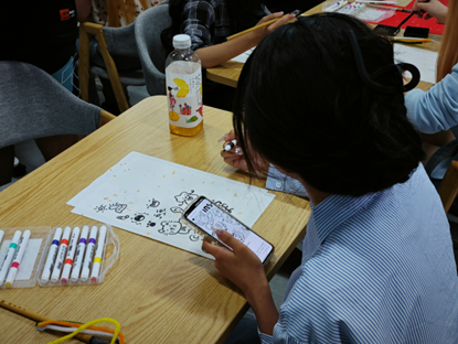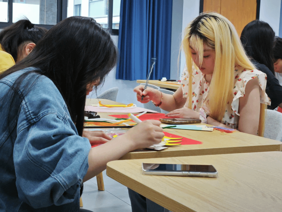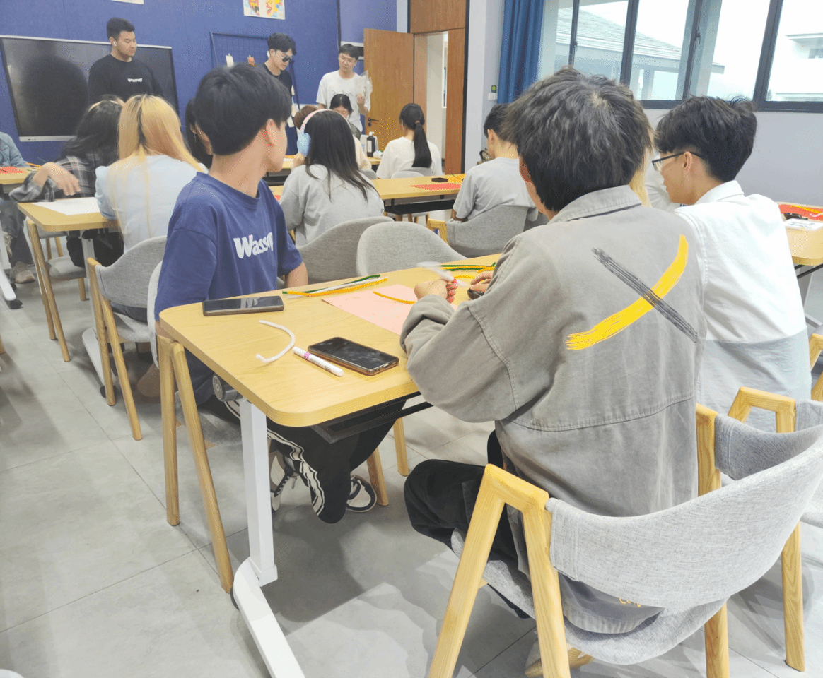 本次活动采用个人或小组的方式参与,同学们手持画笔、皱纹纸、卡纸和剪刀等工具,依据活动规定和现场工作人员的引导,投身于艺术创作的实践之中。他们挥洒自如,各自创作出了充满个人特色的作品。活动现场洋溢着欢快的笑声,氛围轻松愉悦。