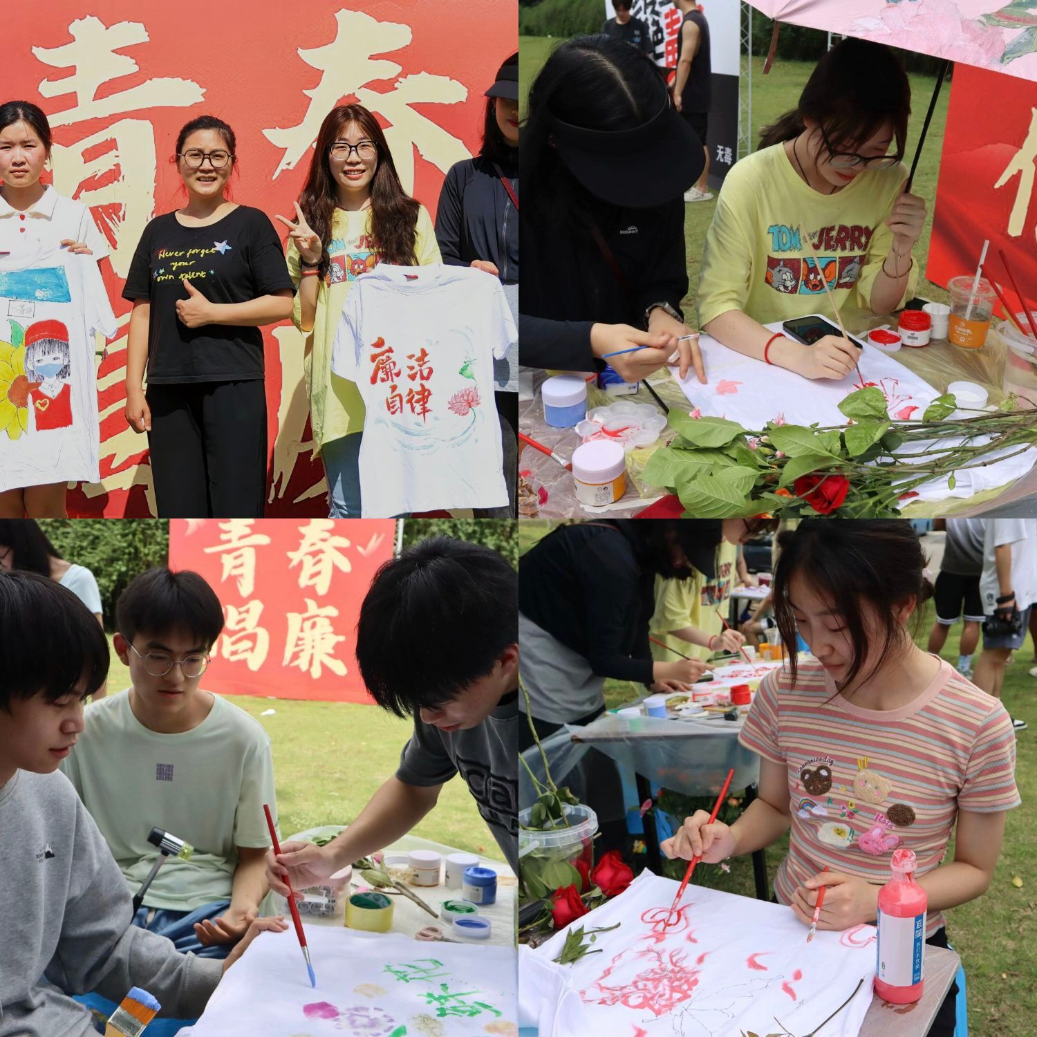 青春倡廉,与我同行:青春是人生中最美丽的季节,她孕育着生机,充满激情。当代大学生处于为事业奋斗的青春,更需要廉洁的人格与情操,才能更好地实现梦想。正如:巴尔扎克所说“没有思想上的清白,也就不能够有金钱的廉洁”。同学们通过手绘文化衫表达对廉洁的信仰与追求。他们设计了充满活力和正能量的图案,如清廉标志、廉洁宣言等,引领着青年人珍惜青春、保持廉洁的理想信念。年轻的逐梦路上,只有秉持廉洁作风,勤奋做事,清白做人,才能实现青春的梦想。