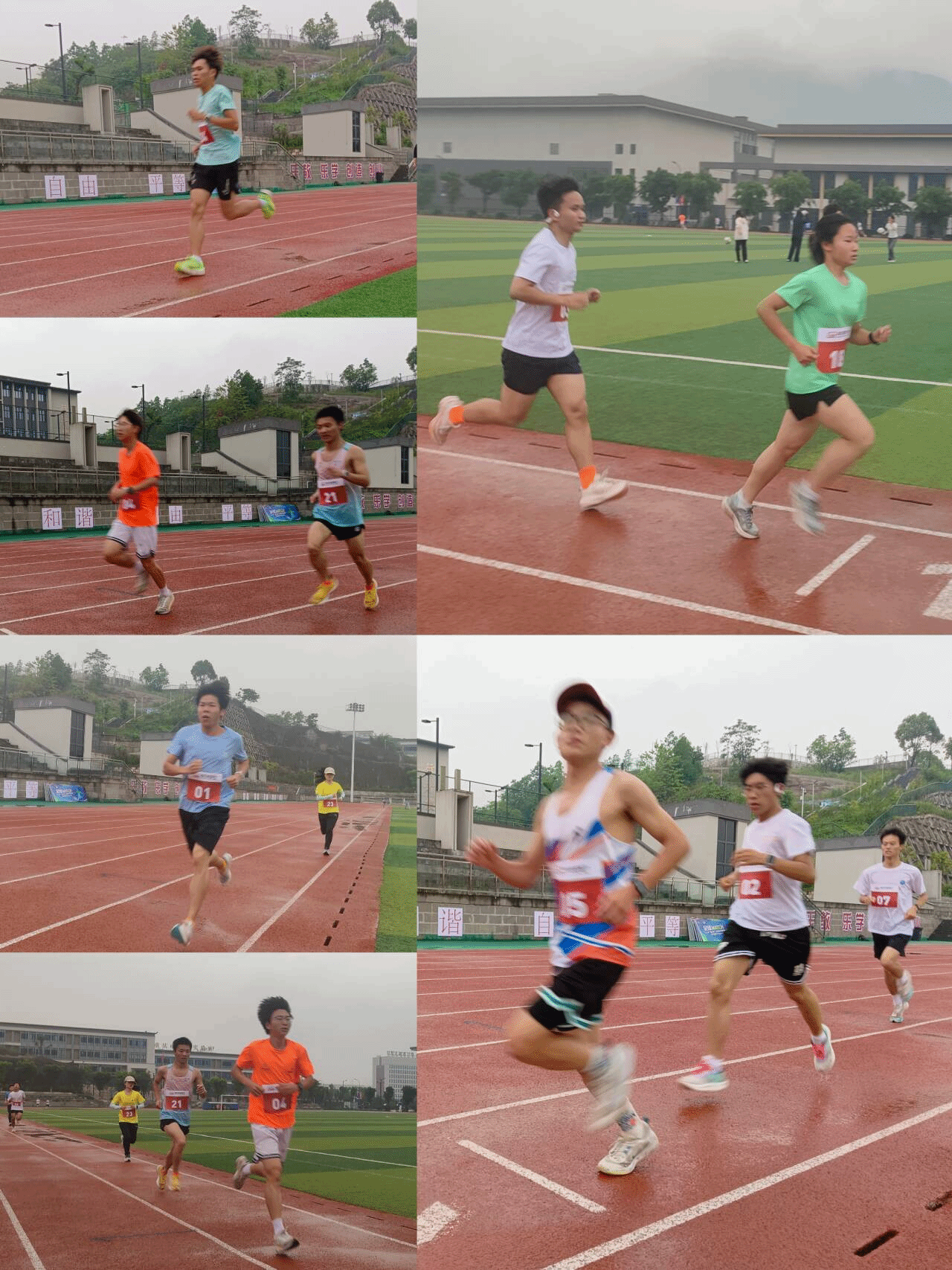 在中长跑的赛场上,后程的毅力考验尤为严峻。它既不像马拉松那样拥有稳定的节奏,也不似短跑那样纯粹依赖无氧爆发。对于速度和耐力的双重需求,对运动员的体能提出了极高的要求,这无疑构成了巨大的挑战。然而,移通学院的长跑健儿们并未被这些困难所吓倒。他们顶着小雨,脚踏积水,以坚韧不拔的精神完成了3000米的赛程。
