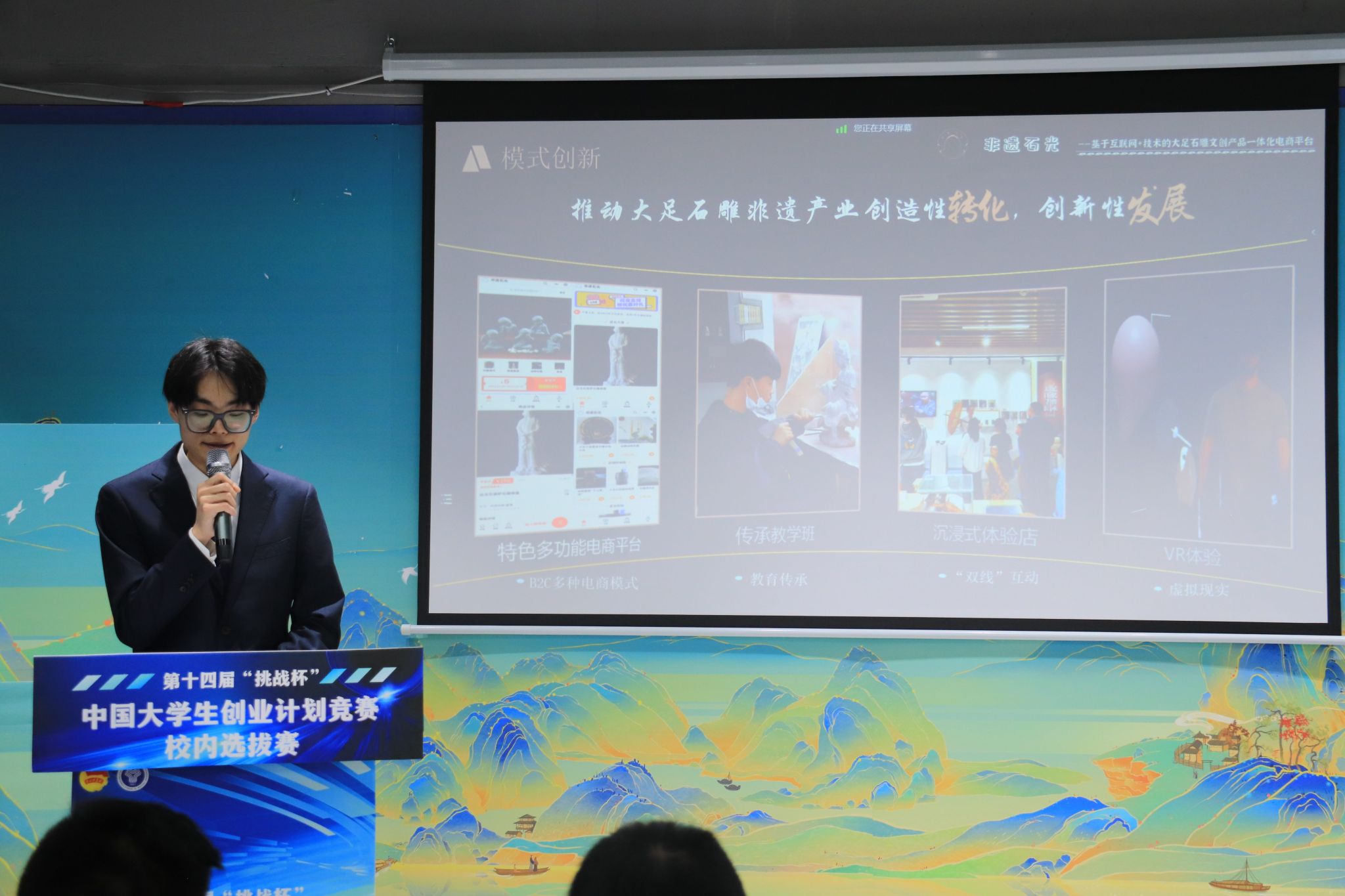 校级决赛分为作品路演展示和评委提问答辩两个环节。在项目展示环节,参赛团队围绕项目背景、市场分析、营销策略、阶段性成果、发展前景、团队成长等方面,充分展示作品的核心竞争力。