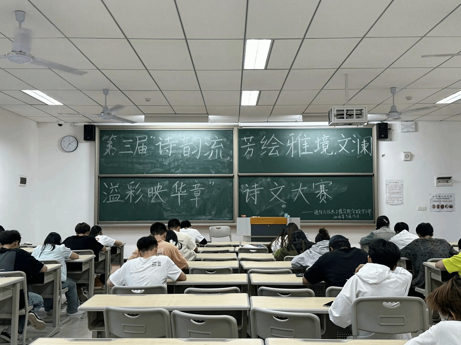 诗词是中华民族的瑰宝,是中华文化的重要载体。通过此次诗文大赛,可以让广大高校学生更好地了解和传承中华优秀传统文化,培养同学们的文化自信。同时,也为同学们提供一个展示自己才华的舞台,激发他们对诗词的兴趣和热爱。特此重庆移通学院通信与信息工程学院学生会学习部于2024年5月15日19点在仁者楼308举办了第三届“诗韵流芳绘雅境,文澜溢彩映华章”诗文大赛初赛。