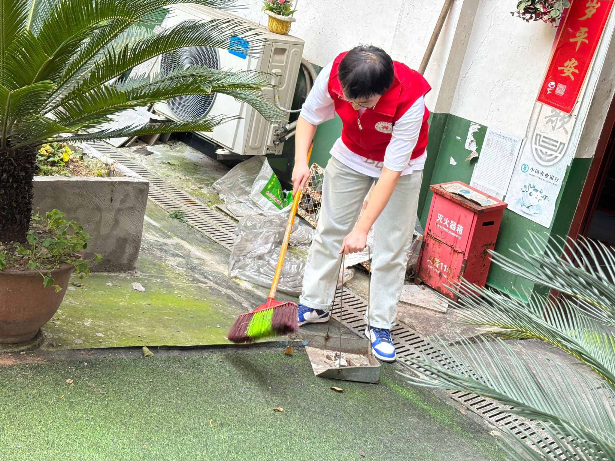 活动当天,阳光明媚,空气中弥漫着爱的气息。志愿者们为老人精心准备了一场别开生面的视听现场,他们呈上旋律优美的歌曲,热情奔放的舞蹈,还有幽默诙谐的小品,每一个节目都凝聚大学生的创意与心血,展现蓬勃的青春活力。此外,志愿者们还承担起家务整理部分,清扫路面,为老人们维持干净整洁的生活环境。