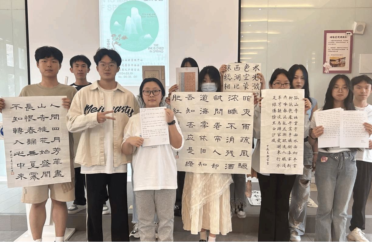以春为题,一笔着墨。春天是万物复苏、万象更新的生命季节。为激发学生对书法的浓厚兴趣,鼓励学生更好地享受春天、热爱生活,同时也为了更好地弘扬和传承中华优秀传统文化,进一步凸显书法艺术的迷人魅力。让同学们提起手中的笔墨,将春天的美好渲染在纸上,让书法停留在大家记忆的深处。“精英之声”语言社和青花墨字书画社于5月19日16:00—18:00在观云书院联合举办了一场“笔作春容,墨染春色”校园书法大赛。点燃学生对书法的热爱之火,让大家沉浸于春天的美好氛围之中。