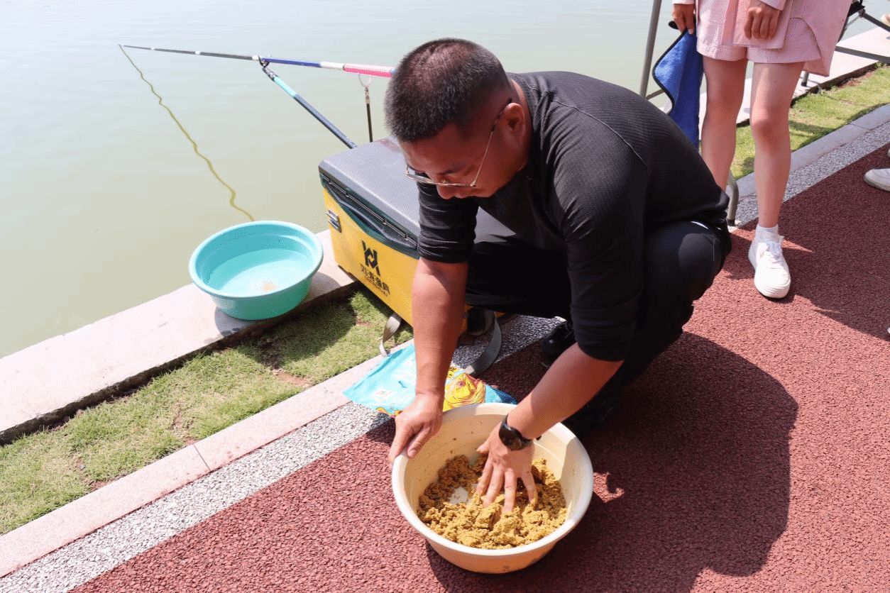 紧接着,刘涛先生亲自在丁山湖畔为师生们进行了实地教学。他详细讲解了调漂、找底、抛竿入水、饵料搭配、看漂提竿等竞钓技巧,并亲自示范操作,让师生们直观地了解到了竞钓的各个环节。在刘涛先生的指导下,同学们纷纷尝试实践,现场气氛热烈而融洽。