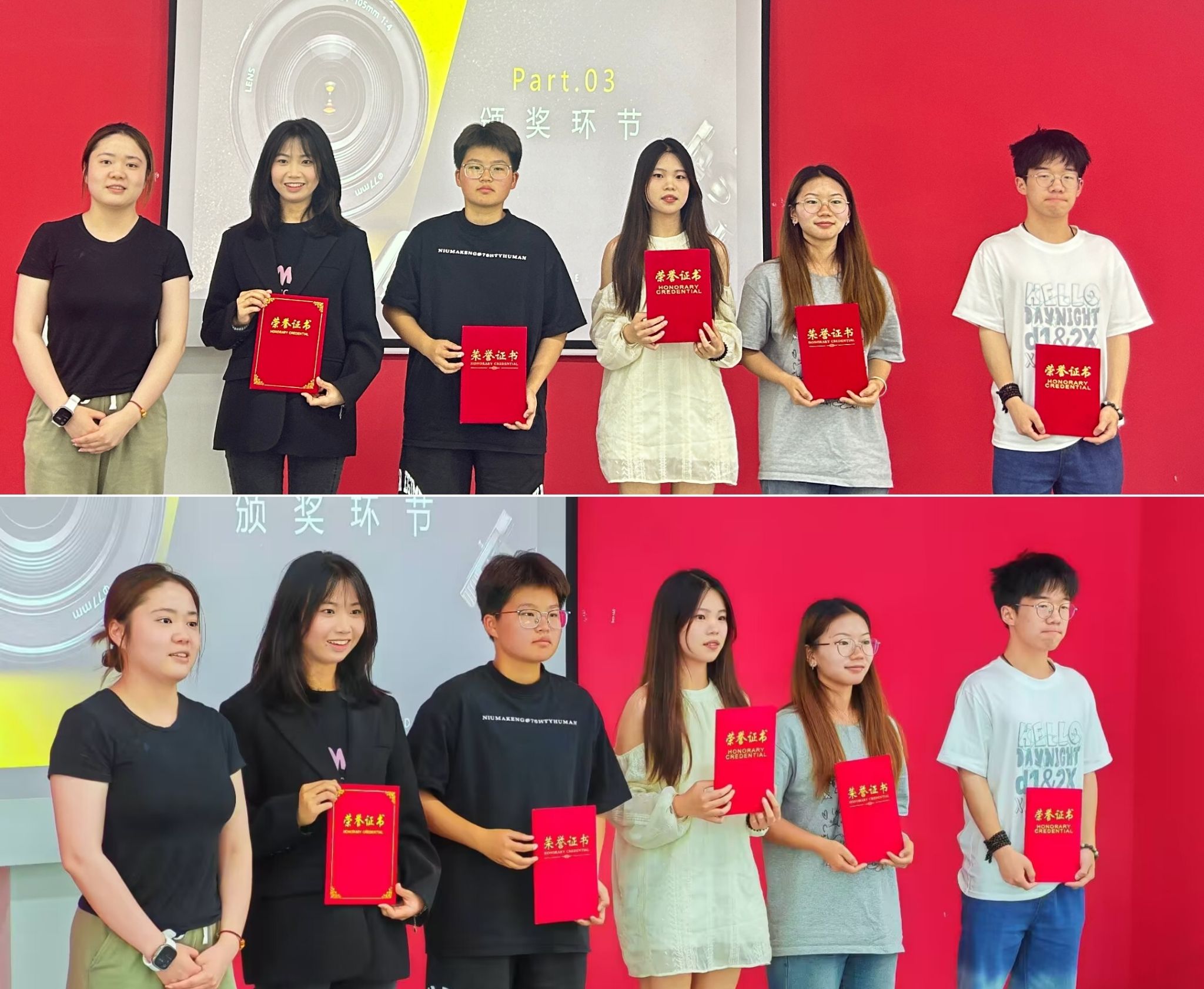 经过评委老师们对参赛队伍综合表现的细致评估,本次寝室摄影活动的获奖名单正式揭晓。其中,“我们要加三分队”凭借其卓越的表现与深刻的故事情感,荣获一等奖的殊荣;“对不队”“奇思妙想队”则凭借各自独特的创意和精彩的展示,共同荣获二等奖;“我们最棒队”“牛马之家队”也凭借他们在活动中的出色表现,荣获三等奖。在颁奖典礼上,任超群老师亲自为获奖队伍一一颁发奖项,并对他们的努力和成果给予了高度的认可和赞扬。这一时刻,不仅是对获奖队伍辛勤付出的肯定,更是对所有参与活动的同学们积极参与、勇于创新的激励。