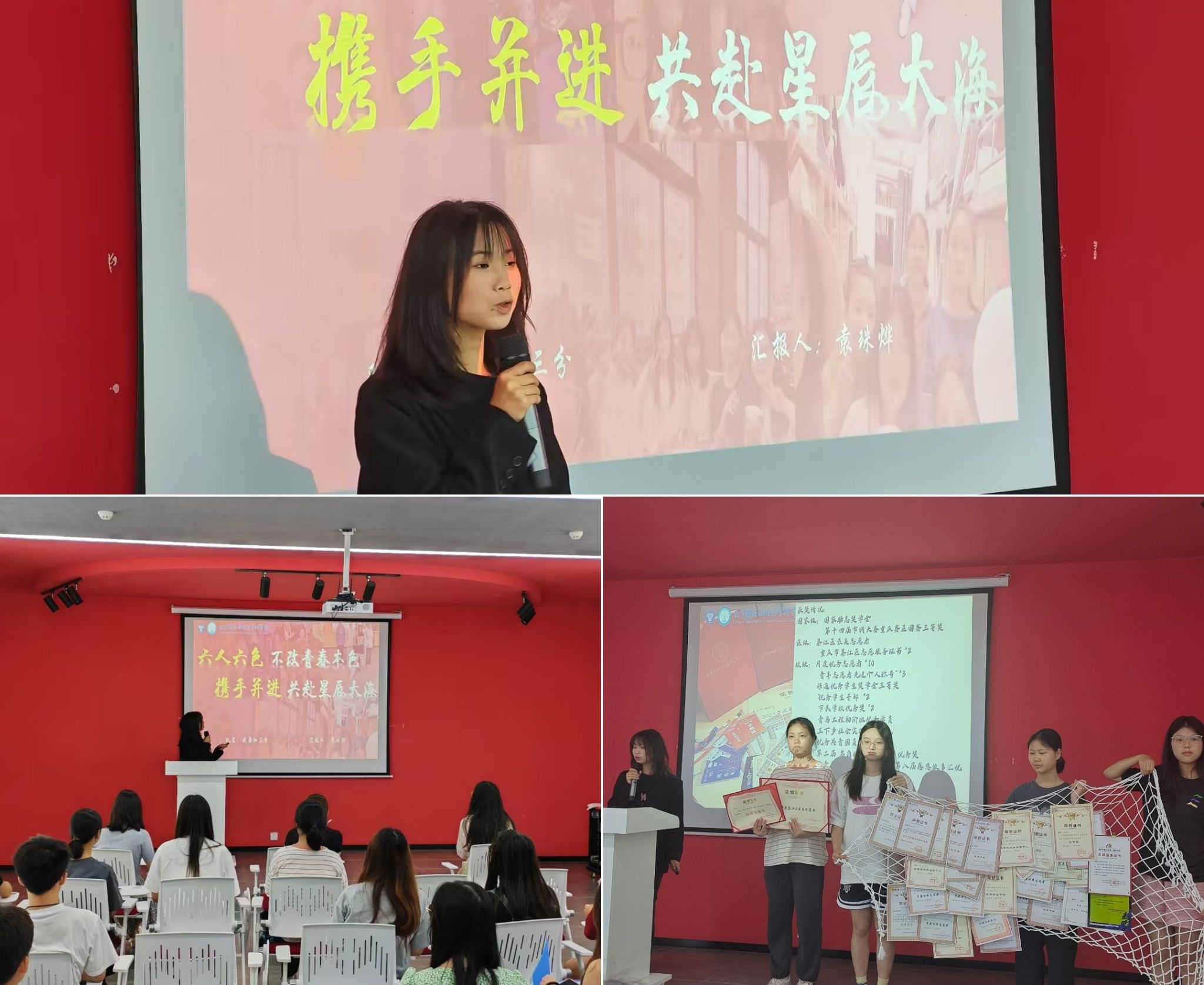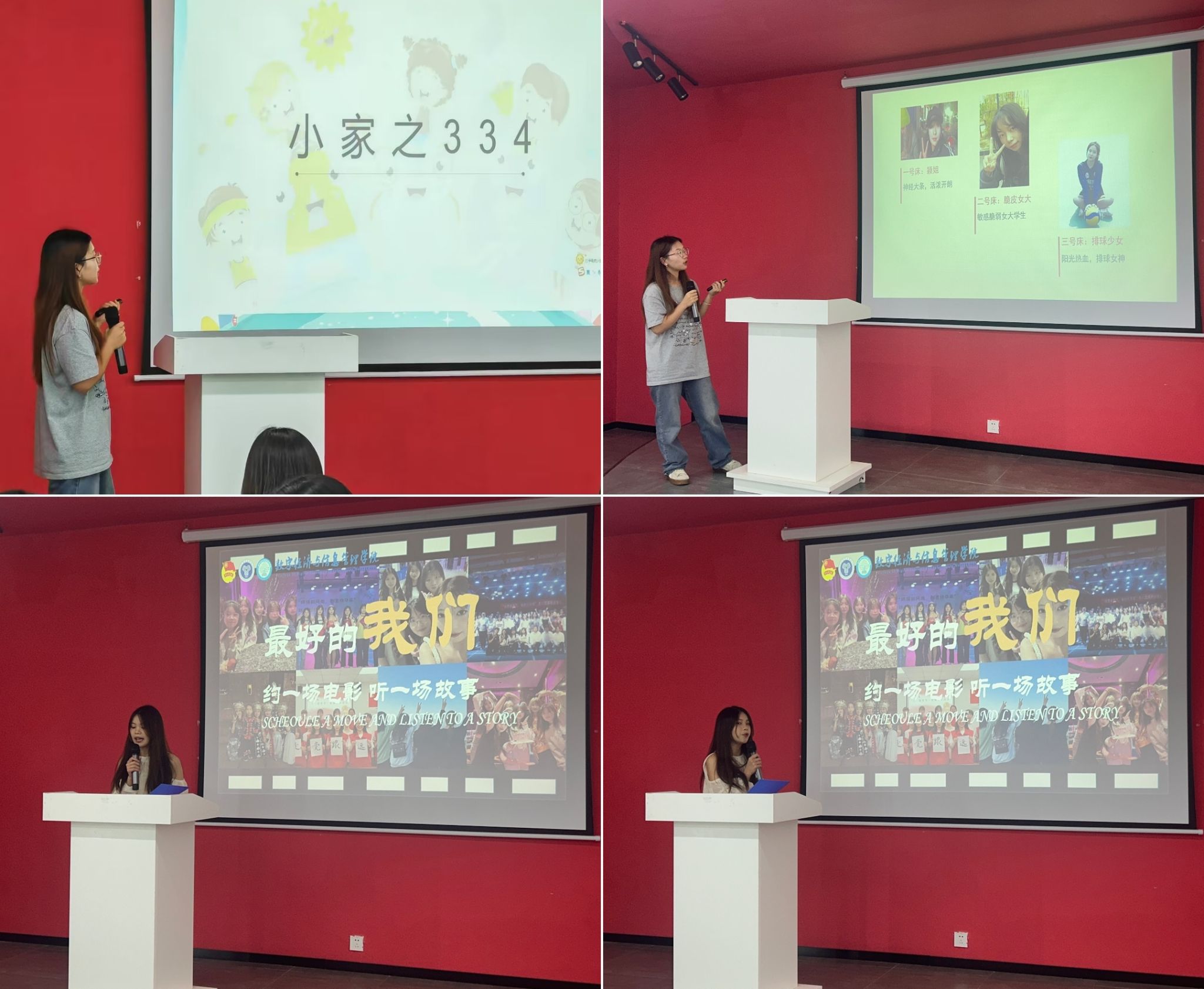 首先登场的是“我们要加三分队”,他们从寝室成员的个性介绍入手,通过一幅幅生动的照片,带领同学们深入了解了他们寝室的独特风采与温馨故事。每一张照片都承载着他们的辛勤付出和辉煌成就,让观众们见证他们的努力与成长。随后,各个参赛队伍也纷纷亮相,大家从不同的角度和层面出发,展示了各自寝室的多彩文化和独特魅力。经过激烈的角逐,“我们要加三分队”凭借其出色的表现和真挚的情感,最终脱颖而出,获得了评委老师及在场师生的一致好评。同时,其他队伍也凭借各自的精彩表现,赢得了评委老师们的认可和鼓励。