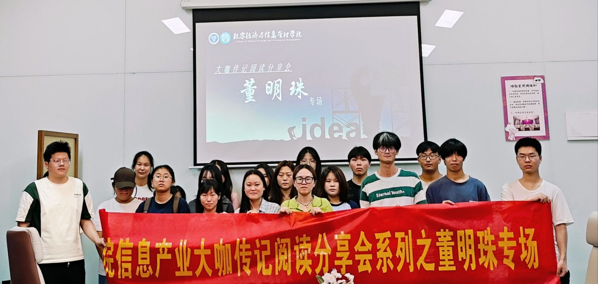 为落实信息产业阅读计划,培养学生独立阅读能力,激发我校学生学习大咖知识的热情,促使同学们更加积极地投入到阅读之中,让大咖文化在大学学习生活中焕发出别样的魅力。数字经济与信息管理学院书院发展部于2024年5月24日14:00在观云书院小雪会议室成功举行了大咖传记阅读分享会人物系列——董明珠专场,本次读书会有幸邀请到就创板块指导老师陈燕华老师出席本次活动,与同学们一起走进企业家的故事。
