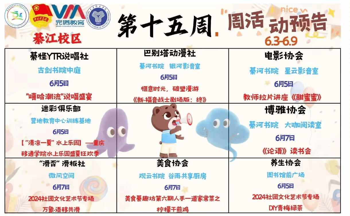 更多精彩活动等待同学们打卡,下周邀请各位王子、公主们一起体验愉快的社团时光!