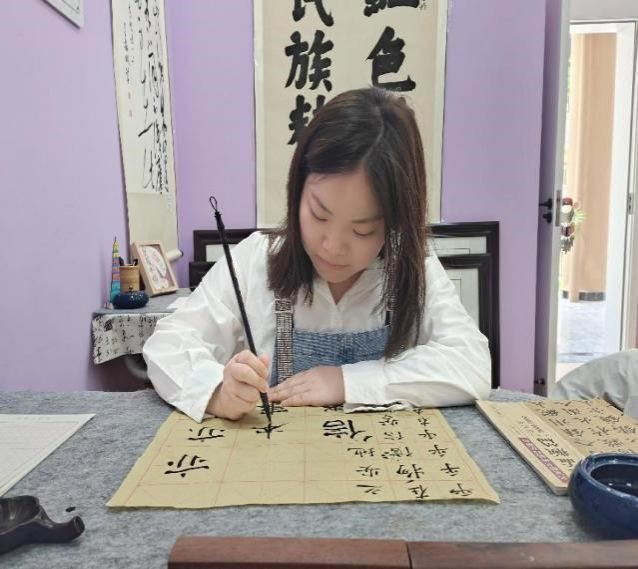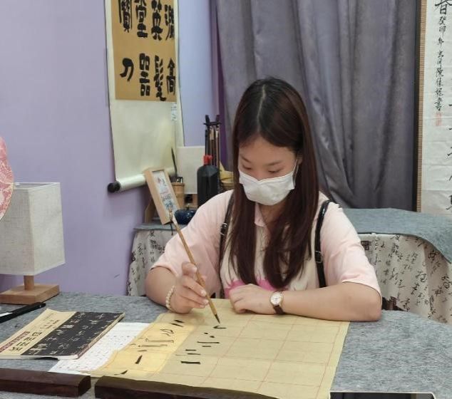 活动准备阶段,就成功吸引了一批热爱书法的同学们前来参观,部分同学在传统文化的熏陶中尝试书法的写作与临摹,社团的工作人员也积极地回答和解决了同学们提出的各种问题,在调笔中纠正他们的握姿,在行笔中规整他们的笔法。