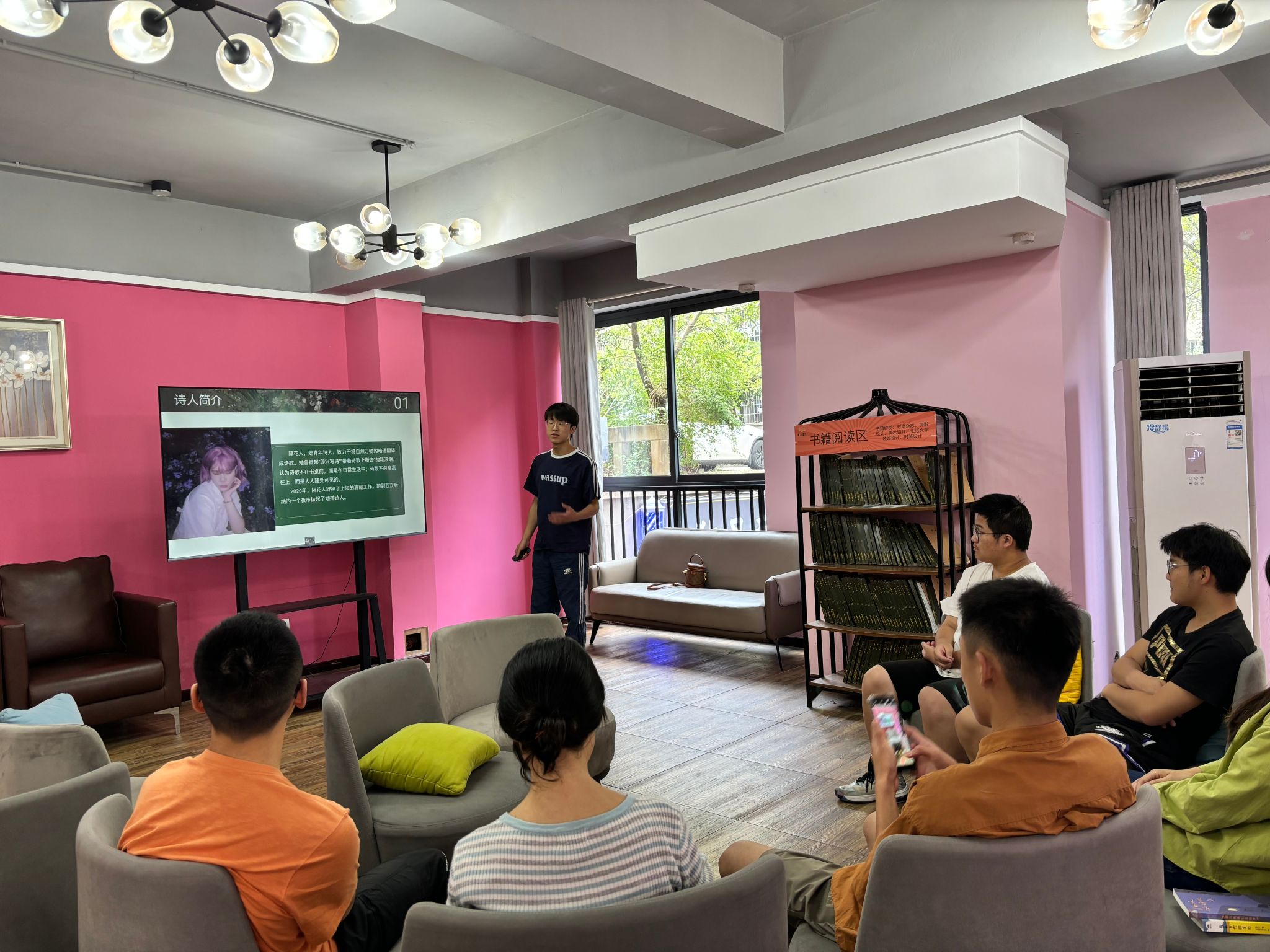 随后,代久淋同学分享了作家隔花人的作品《风来自你的方向》和《星期六晚我们去散步吧》,在街头写诗的青年诗人用眼睛观察生活,用文字丈量世界,带给了大家深深的震撼。让我们感受到了文字的力量和作者眼中独特的浪漫。生活不止眼前的苟且,还有诗和远方的田野。