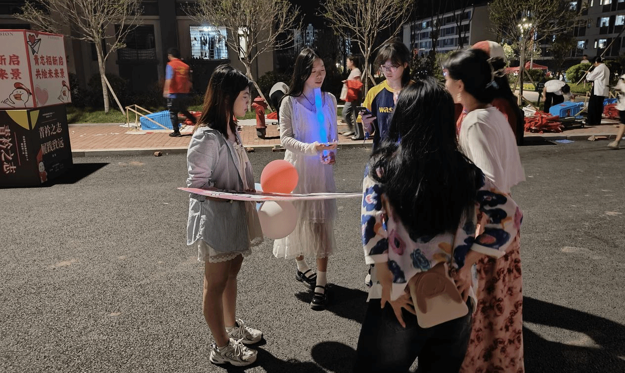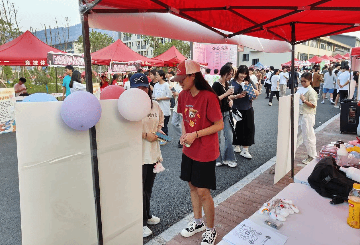 活动现场,虹雨配音社的展位宛如一个微型的舞台,精心布置得既专业又不失温馨。海报、彩灯、挂饰,每一样都透露出社团的用心与热情。展位前,人头攒动,学子们或驻足观看,或认真聆听,或积极咨询,氛围热烈而有序。