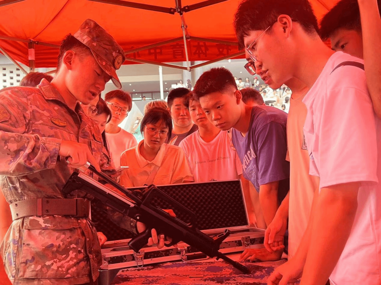 学生们怀着好奇与敬畏的心情逐一接触这些象征力量与勇气的装备,他们轻抚枪械,探寻其工艺美学,感受那凝聚匠心的独特重量。这份体验不仅仅是对军事装备的直观认识,更是一种对国家防卫力量的无声致敬。每个人的脸上都洋溢着兴奋与思考,这不仅是技术的展示,也是对意志与勇气的启迪。在此刻,国防不再是遥远的概念,而是触手可及的现实,激发了他们对保家卫国事业更深的敬意和理解。