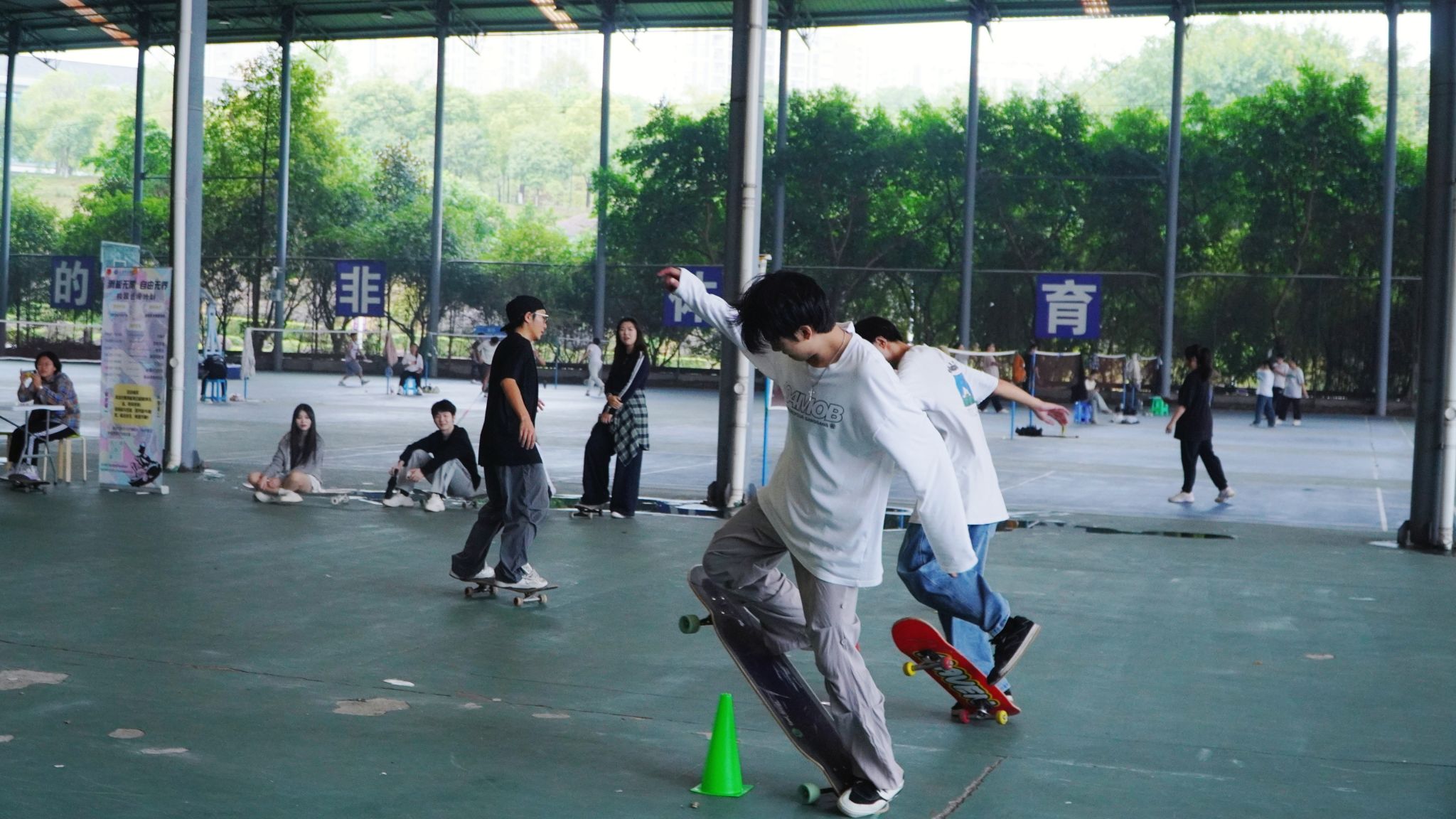 在学校里面的某些角落,总有那么一群人,他们脚下踩着滑板,身姿矫健,穿梭于校园中。他们不仅仅是在展示一种运动技巧,更是在传递一种文化、一种生活态度。所以于2024年10月19日周六下午14:00,“滑板无界自由无限”校园巡滑计划在北校区风雨球场火热举行。即使是阴雨天气,依旧吸引了众多滑板爱好者目光,让他们不远千里来相会。这场活动旨在推广滑板运动,让更多人了解和参与到这项充满激情和活力的运动中来。