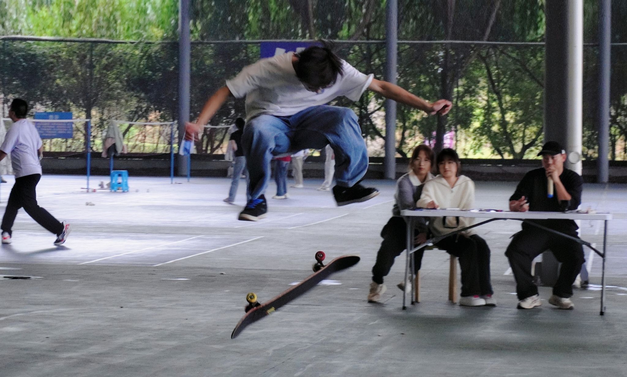 滑板活动比赛环节,带领参与者们一同感受滑板的魅力,从基础技巧到高级动作,从必备动作到娱乐玩耍,一步步引领你走进这个神秘又充满激情的滑板世界。无论你是滑板新手还是资深爱好者,都能在这里找到属于自己的乐趣。第一轮我们就将分出新手与老手,分别进行荡板比赛。滑板爱好者们纷纷踏上滑板,无论是轻盈的步伐、飘逸的身姿的老手,还是较为生疏,但依旧坚持不懈的新手,都在荡板上自由驰骋,展现他们对滑板的热爱,将青春的风采展现得淋漓尽致。每一轮的成功与坚持,都引来观众们的阵阵欢呼与掌声。