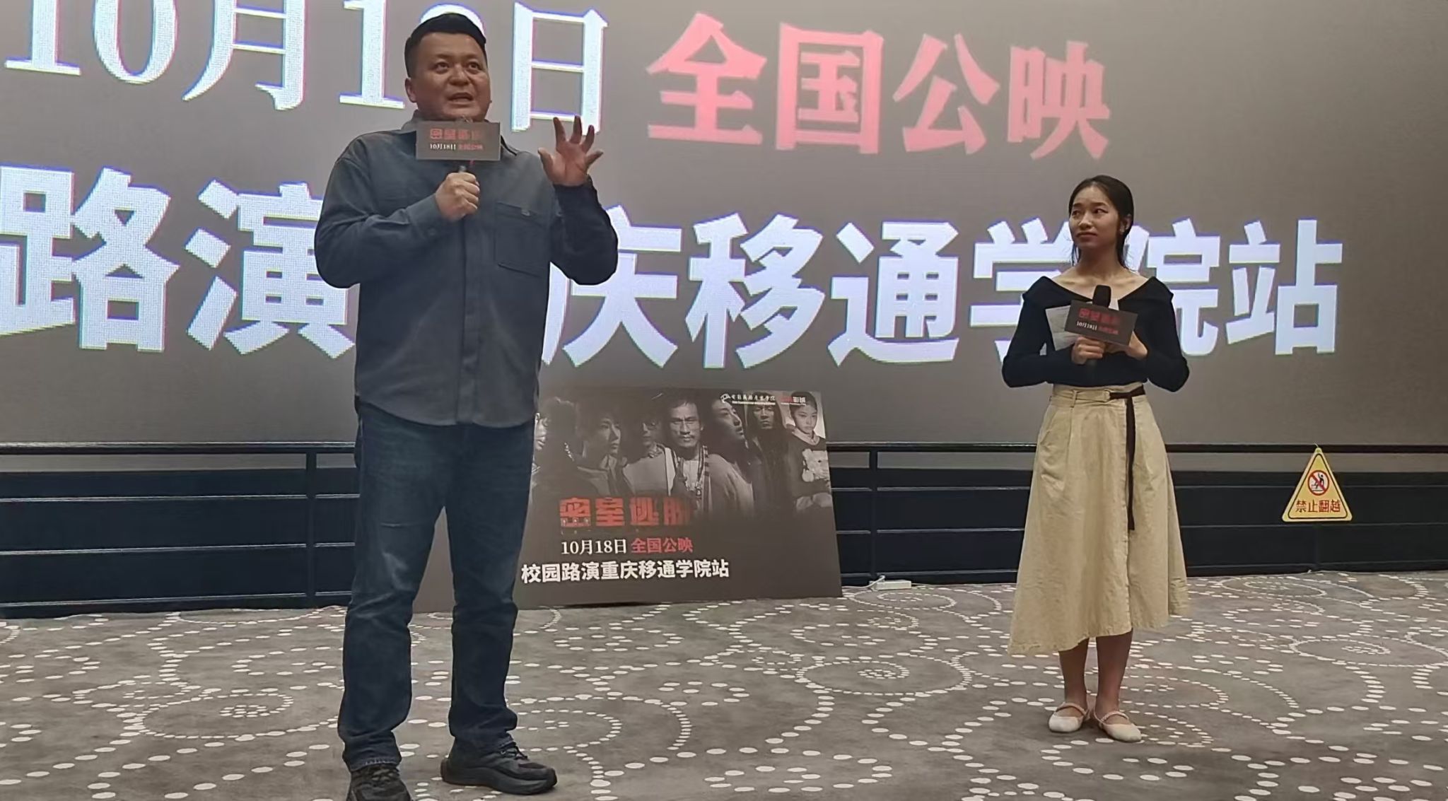 在万画影城X超幕的校园路演现场,殷乐导演一亮相便引发了观众们的热烈掌声。他首先对大家的热情支持表示感谢,并分享了电影创作过程中的点滴故事。殷乐表示,《密室逃脱》不仅是一部惊悚片,更是一部探讨人性、友情与勇气的作品。他希望通过这部电影,能够让观众在紧张刺激的情节中,感受到主人公们面对困境时的坚韧与不屈。