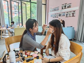 除了绘制图案外,美妆协会的成员们还为大家准备了丰富的互动环节。她们设置了抽奖环节,为幸运参与者送上了精美的美妆礼品。同时,还安排了美妆知识问答,让大家在轻松愉快的氛围中学习到更多的美妆技巧。