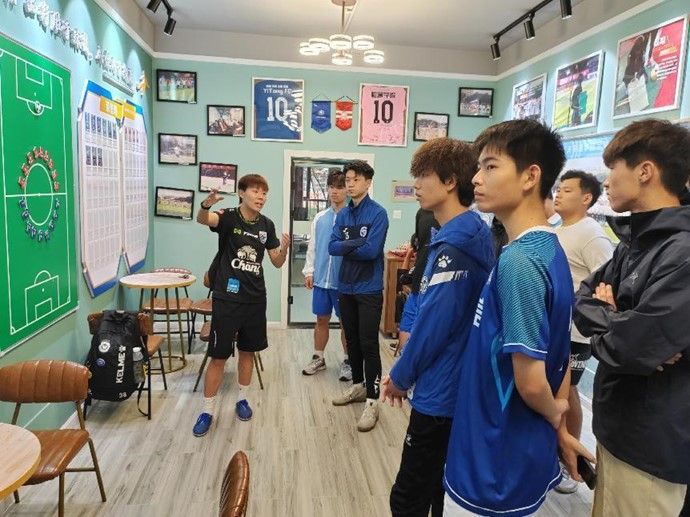 随后,在教练员的引导下,学生们参观了足球基地,了解了专业足球运动员的日常训练所需要的准备。现场气氛热烈而融洽。来自智能工程学院的钟维鑫同学在参观后感慨道:“今天亲眼看到足球队的文化传承,才真正理解到足球不仅仅是一项运动,它更是一种精神、一种文化,让人热血沸腾。我被他们坚持不懈的努力所感动,也希望自己能在学业上发扬这种精神。”