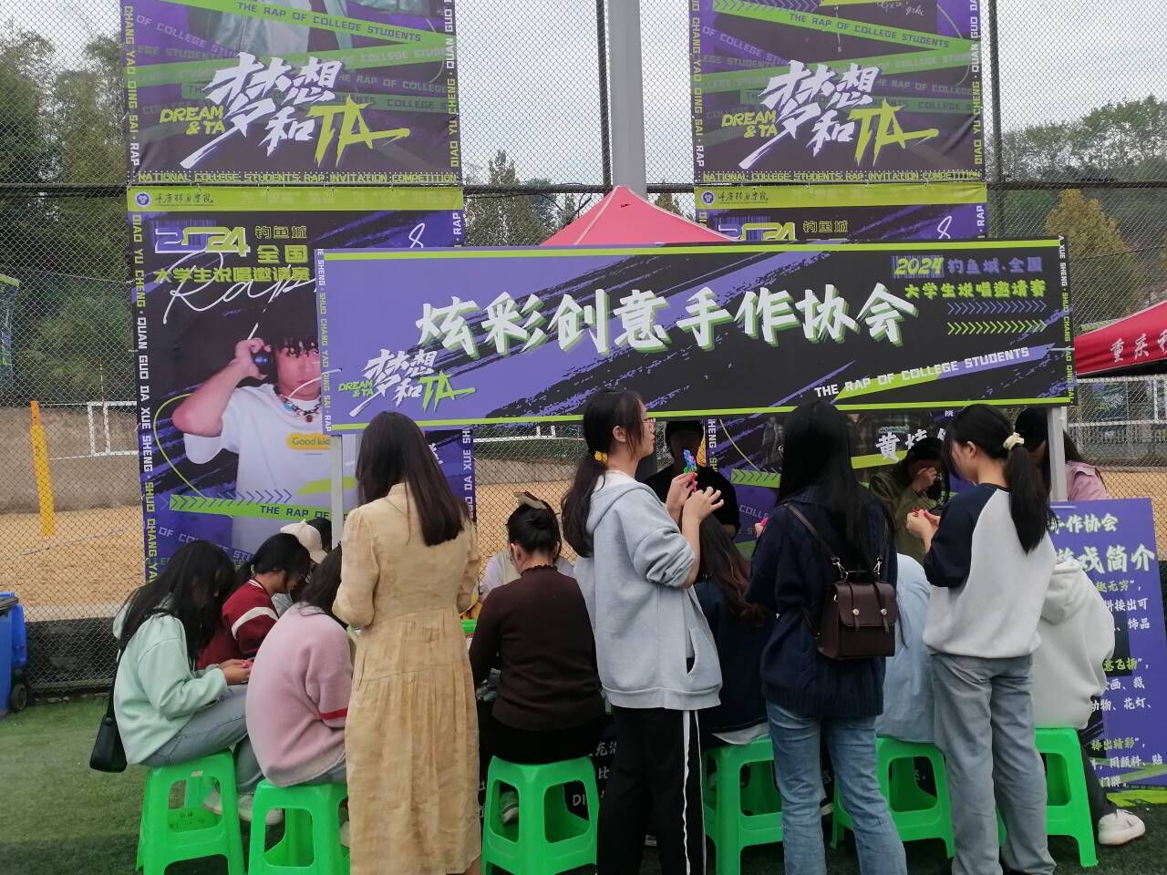 在这个充满活力与创意的时代,音乐与创意的碰撞总能激发出无限可能。10月26日,2024全国大学生说唱邀请赛在学校五人制足球场火热开唱,而在这场音乐盛宴的外围,重庆移通学院炫彩创意手工协会以其独特的匠心与创意,为大赛氛围的营造贡献了一份不可多得的力量。协会不仅展现了当代大学生的艺术才华,更以实际行动诠释了“匠心筑梦,创意无限”的精神内涵。