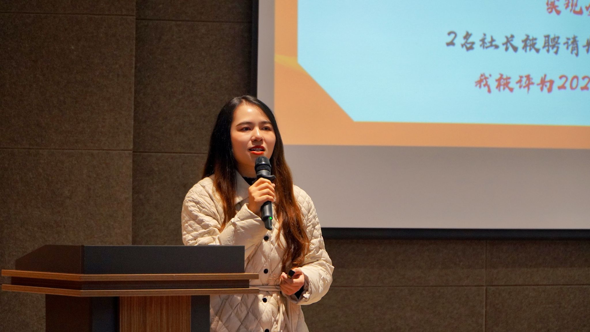 最后,吴静老师对社团负责人表达了寄语“勇敢的人先享受世界”只要勇敢迈出脚步,就可以优先看到世界的美;“人生是旷野不是轨道”在旷野,人们可以肆意奔跑,不受限制,轨道,只能沿既定的方向跑;吴静老师希望社团负责人们不被束缚,用多元的方式发扬社团。