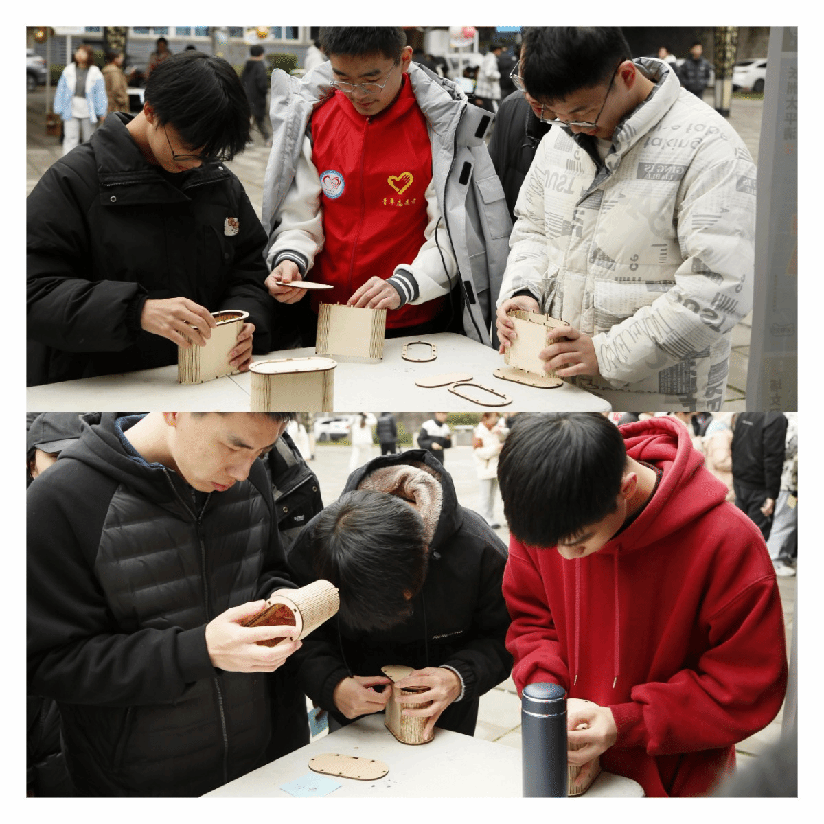 为了让更多人亲身感受这份科技与文化的交融之美,3D打印社精心设置了丰富的互动体验区。在这里,同学们不仅可以近距离观赏激光雕刻的生僻字作品,感受其独特的立体美感,还能亲手体验激光雕刻的象棋和立体拼接笔筒的制作过程。