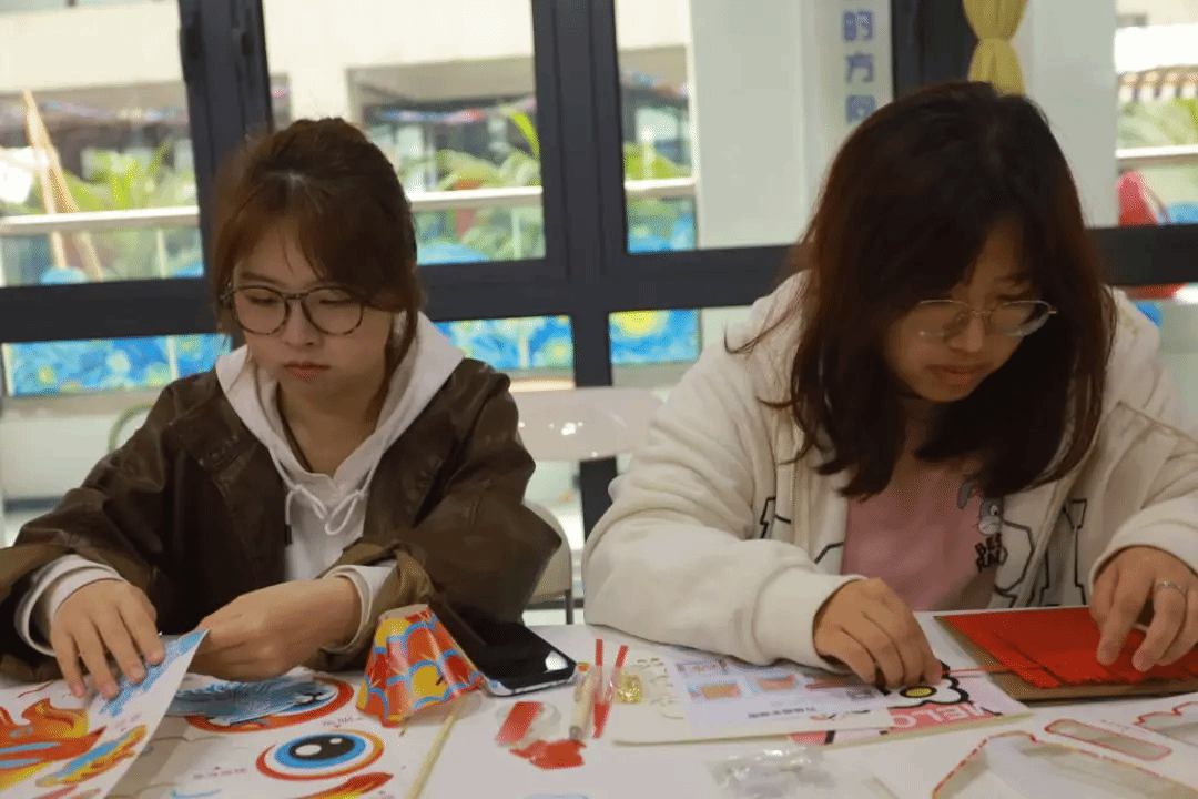 在了解完鱼灯文化后,制作环节正式开始。同学们和华韵汉服协会成员纷纷拿到鱼灯材料包,迫不及待地开始动手制作。打开材料包,里面有长方形纸,纸上面有印着精美图案的纸质部件,精致的零件。起初,大家都觉得按照视频进行拼接应该不难,可真正上手后,才发现这是一场耐心与细心的考验,稍有偏差就无法顺利组合。这些部件上印着色彩鲜艳、图案精美的鱼鳞、鱼鳍和鱼尾等,大家小心翼翼地将它们从纸上取下来,拼接在一起,确保每一处都贴合紧密。在这个过程中,大家充分发挥动手能力,让鱼灯更好的展现在我们面前。