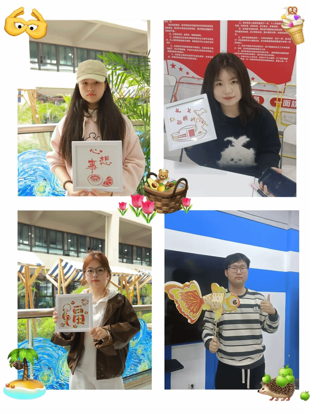 制作完鱼灯,大家又将目光投向竹编。考虑到实际情况,此次竹编材料直接选用了竹条。别瞧只是竹条,想要编出精美的造型,同样考验着大家的耐心与技巧。同学们全神贯注,将竹条进行编织,努力模仿传统竹编工序。编好竹条后,大家把写有美好祝福语的图纸放置其上,再细心装入相框。原本平凡的竹条,瞬间化作承载祝福的独特艺术品,每一个竹编作品都成了美好祝愿的底色,饱含着大家对未来的憧憬。