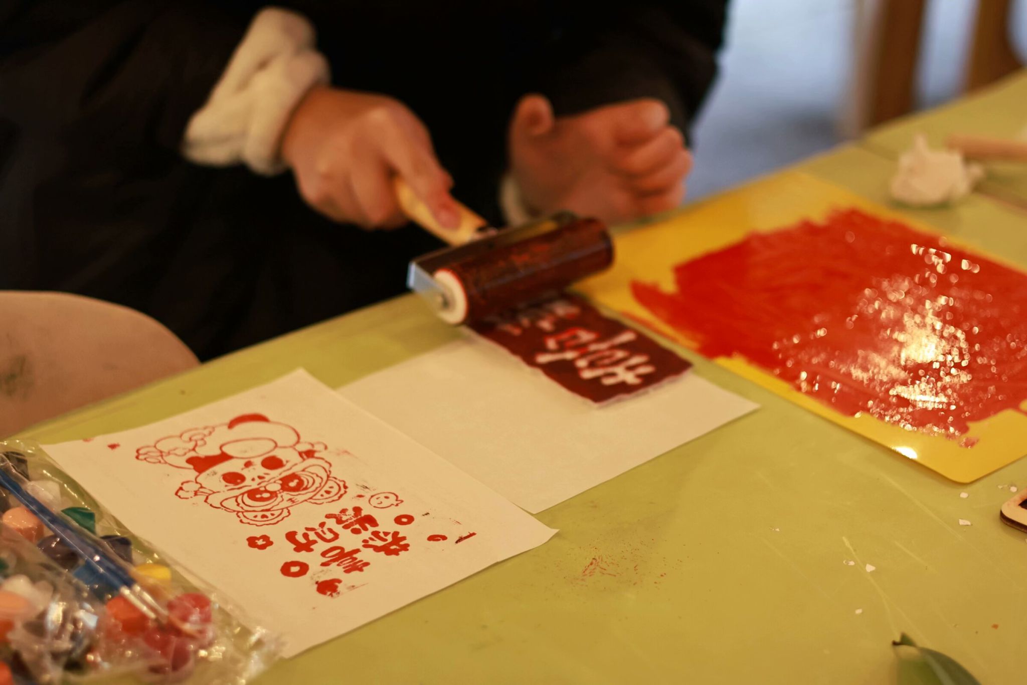 随后,同学们纷纷参与到拓印的体验中来。在工作人员的指导下,他们选择自己喜欢的拓印图案,然后仔细地涂抹墨汁、铺纸、按压,每一个步骤都显得格外专注和细致。他们或手持刷子,轻轻涂抹墨汁;或小心翼翼地将宣纸覆盖在拓印版上,用专业的手法按压。在大家的共同努力下,一幅幅精美的拓印作品逐渐呈现眼前,既有传统的文字、图案,也有同学们自己创作的独特设计。这些作品不仅展示了拓印艺术的独特魅力,也体现了同学们的创造力和想象力。