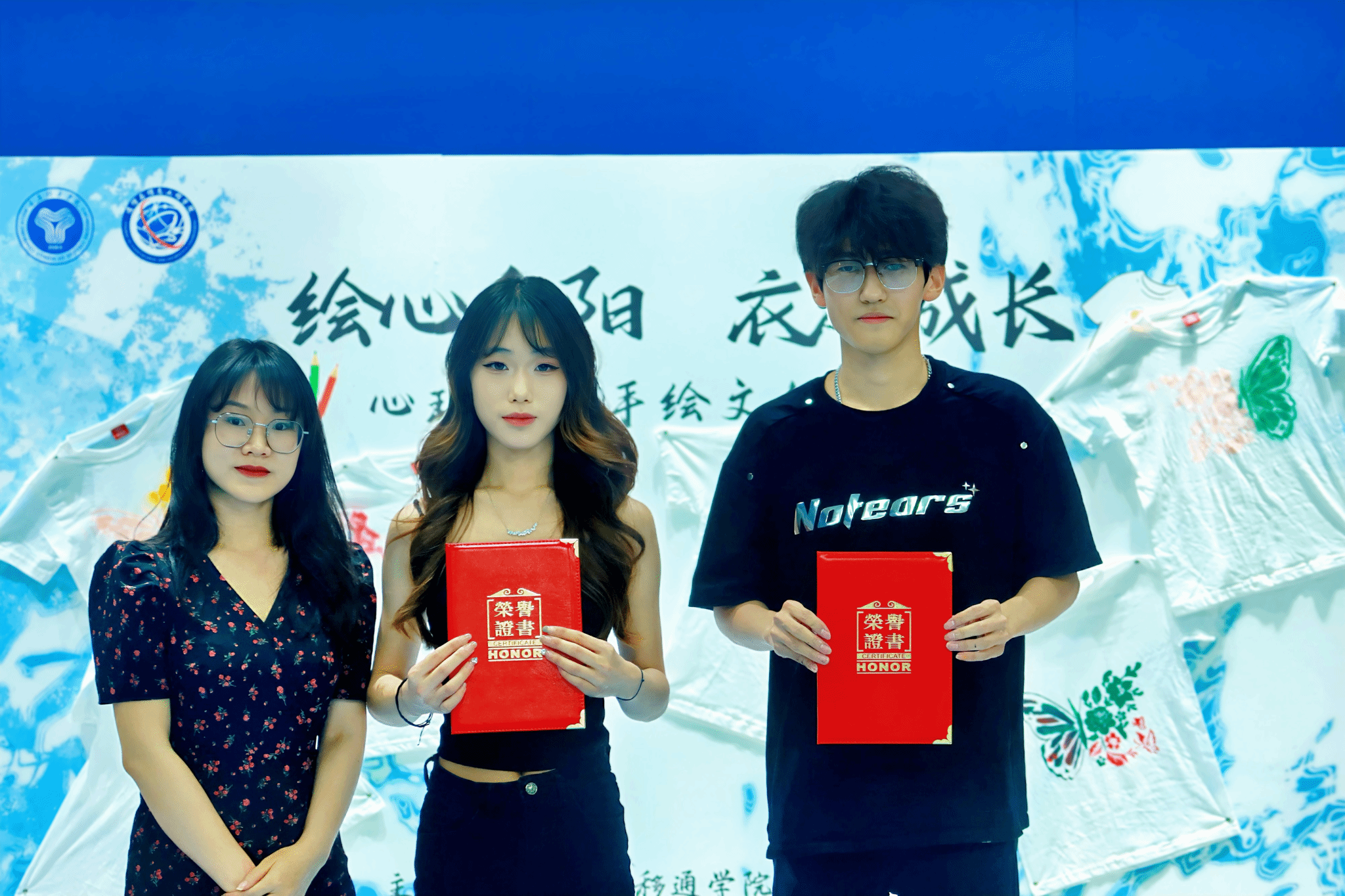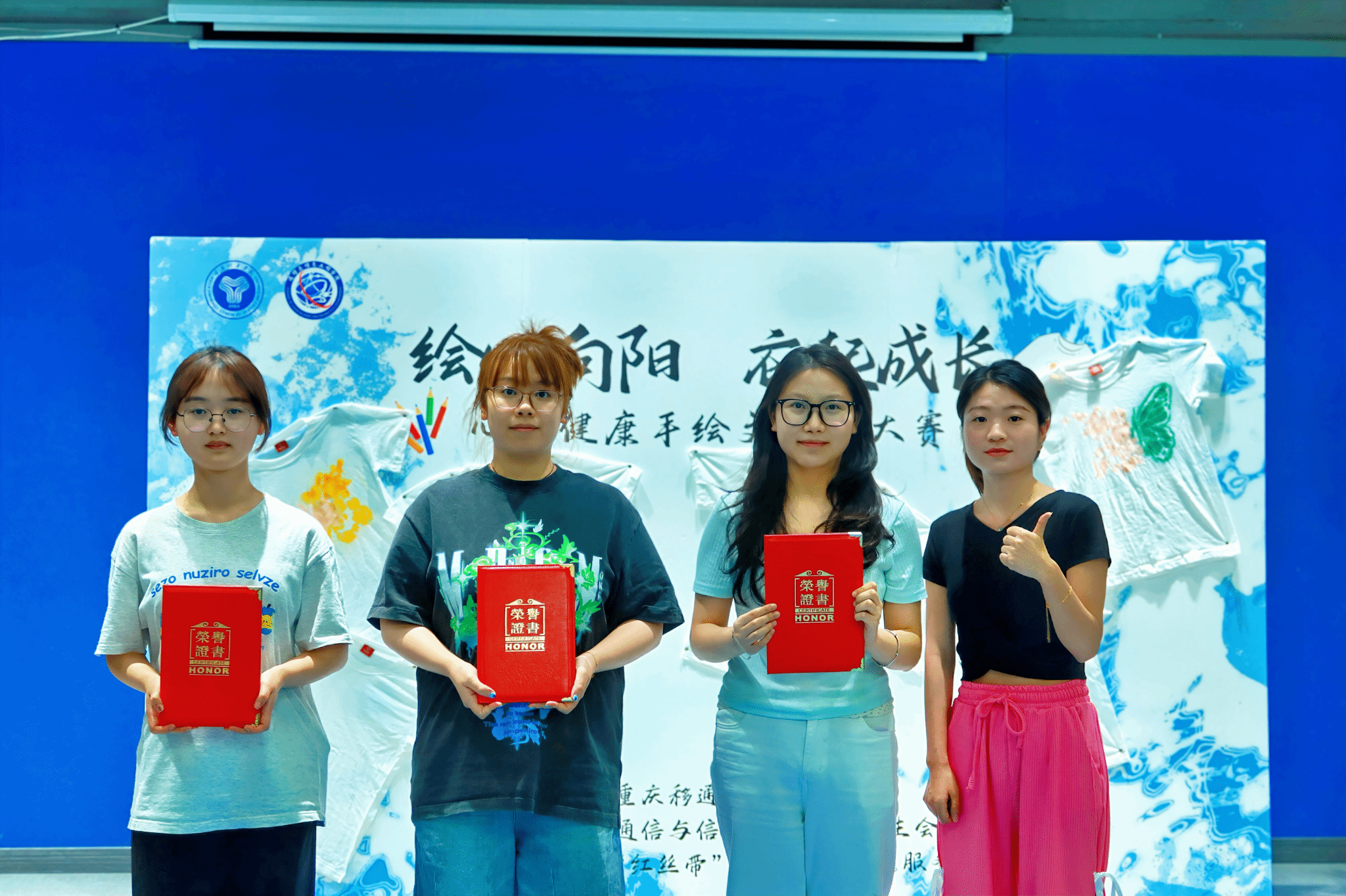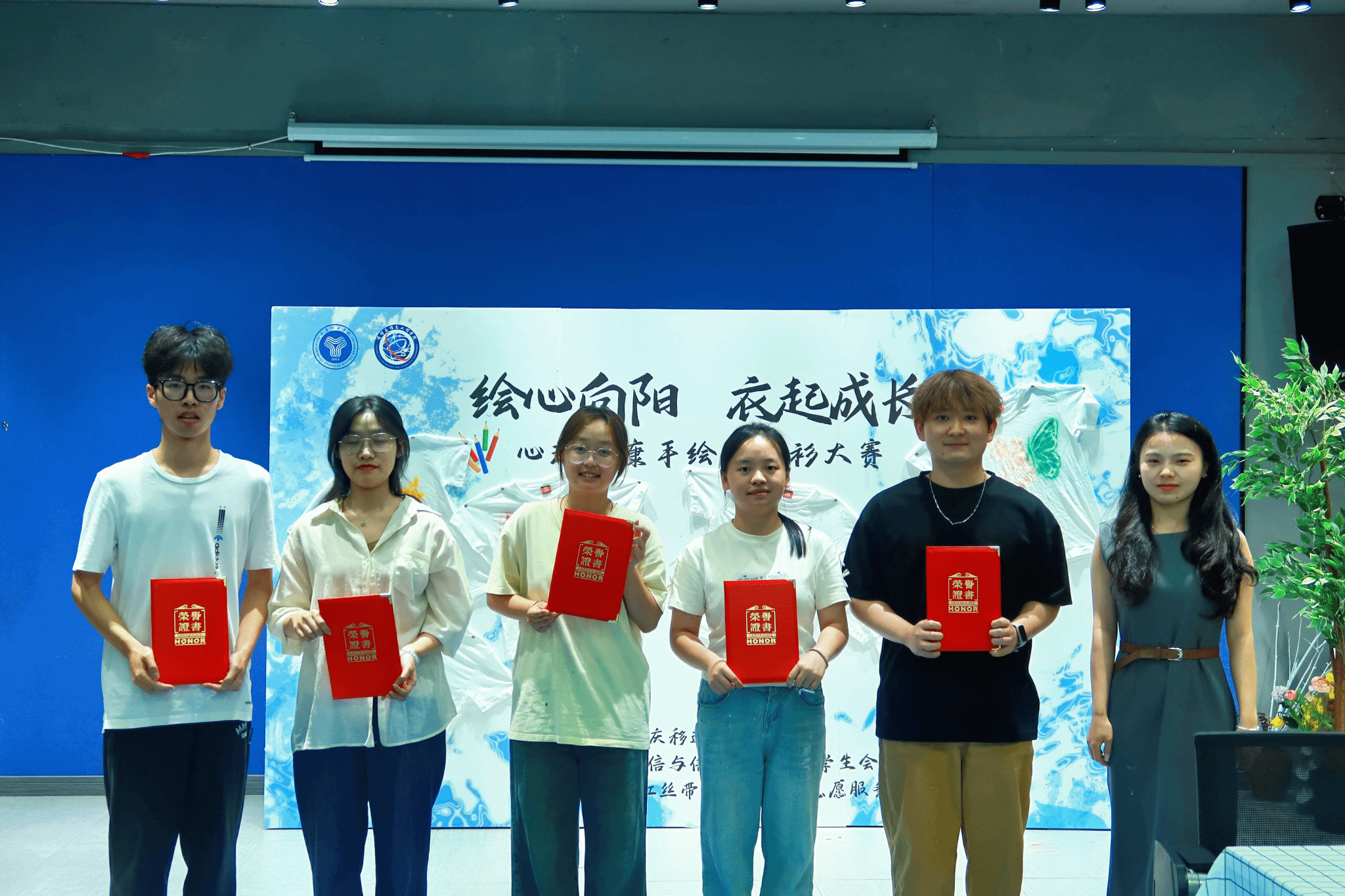 在“5·25”全国大学生心理健康日来临之际,由重庆移通学院学生会主办,通信与信息工程学院学生会及“红丝带”禁毒防艾专项支队承办,通信与信息工程学院权益部协办的“绘心向阳,衣起成长”心理健康手绘文化衫大赛于2025年5月23日下午一点在天空书院长空报告厅顺利开展。活动将心理健康教育与艺术表达深度融合,15支参赛队伍用画笔在纯白T恤上展开了一场“看得见的心理对话”。
