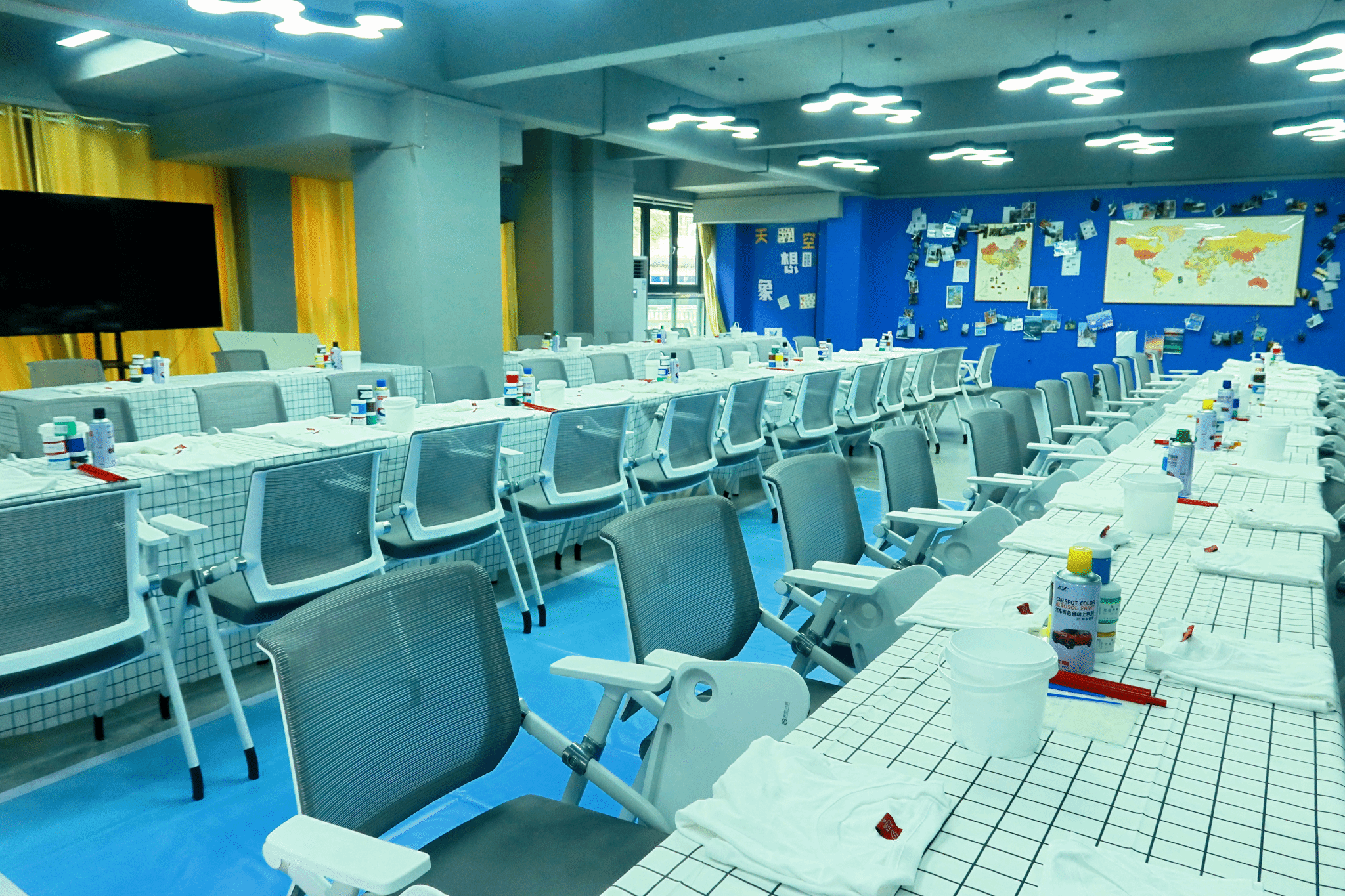 淬炼商学院梁倩老师抵达活动现场亲身指导,纯白T恤如同等待书写的情绪日记本。参赛者们或盘腿围坐,或俯身勾画,颜料盘中的色彩逐渐化作具象的情感符号: