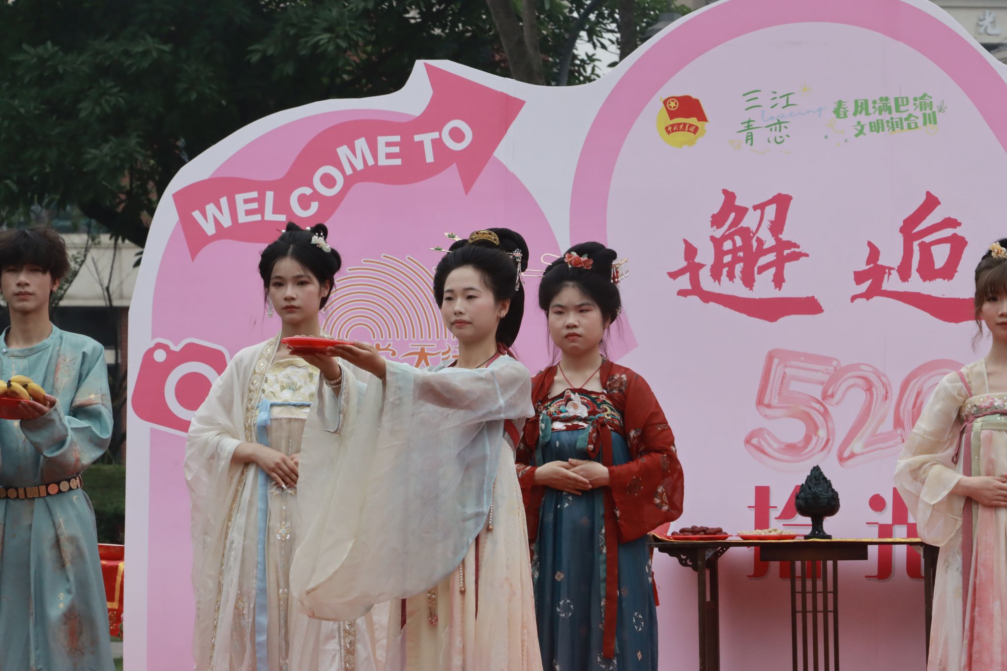 为弘扬中华优秀传统文化,为广大青年搭建优质交友平台,2025年5月17日,由共青团合川区委、共青团重庆移通学院委员会、北辰·拾光天街共同主办的“邂逅古韵,520心动时光之旅”青年交友联谊活动在合川区拾光天街中央草坪精彩启幕。我校华韵汉服协会以独特的汉服文化,带领广大青年在古韵雅风中相识相知,开启一场浪漫而富有文化内涵的邂逅之旅。
