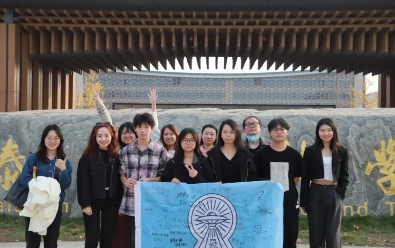 论坛结束后,大家早早离开,与四川大学科幻协会、武汉大学科幻协会、北京邮电大学科幻协会、高校科幻平台的代表一同会合。从共进午餐的天南聊到海北,再到由蓬莱科幻学院陈希老师领路参观诸个书院,让我们对泰山科技学院有了更深的了解。“无用之用方为大用”的无用楼三楼是蓬莱科幻学院,陈老师从蓬莱科幻的发展历程讲起,到各个房间布置的参观讲解无比细致。诸多科幻同好围坐一起的科幻交流,是我们之间关于学校学生与科幻的链接,同时我们也深入探讨了高校科幻平台的移通模式。一支笔,一句话;一张照片,一群人。科幻社团周边的交换,科幻照片的定格,加强了高校间科幻社团的联系。