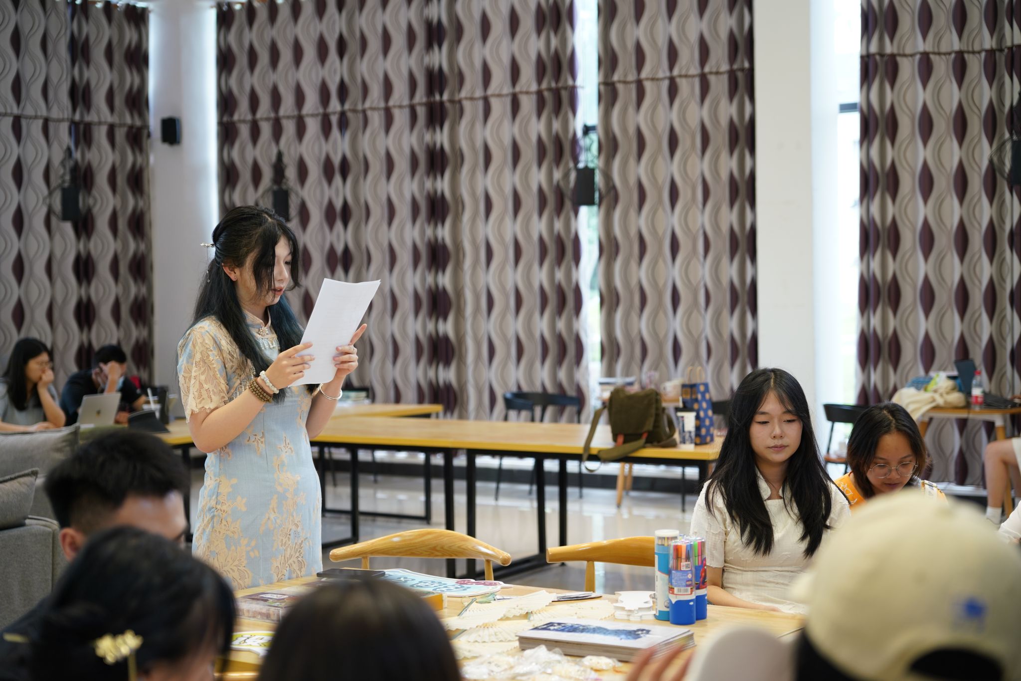 秉承“服务同学,关爱女生”的宗旨,重庆移通学院学生会女生部于2025年5月28日在天渠110阅览室开展了“旗韵流芳,古韵今韵共赏”古风旗袍会活动。让旗袍爱好者齐聚一堂,一起探讨旗袍相关知识,多个互动环节为这次活动增添趣味,让大家在趣味中感受传统文化的魅力,绽放新时代女性的自信风采。始于女生,不止女生。