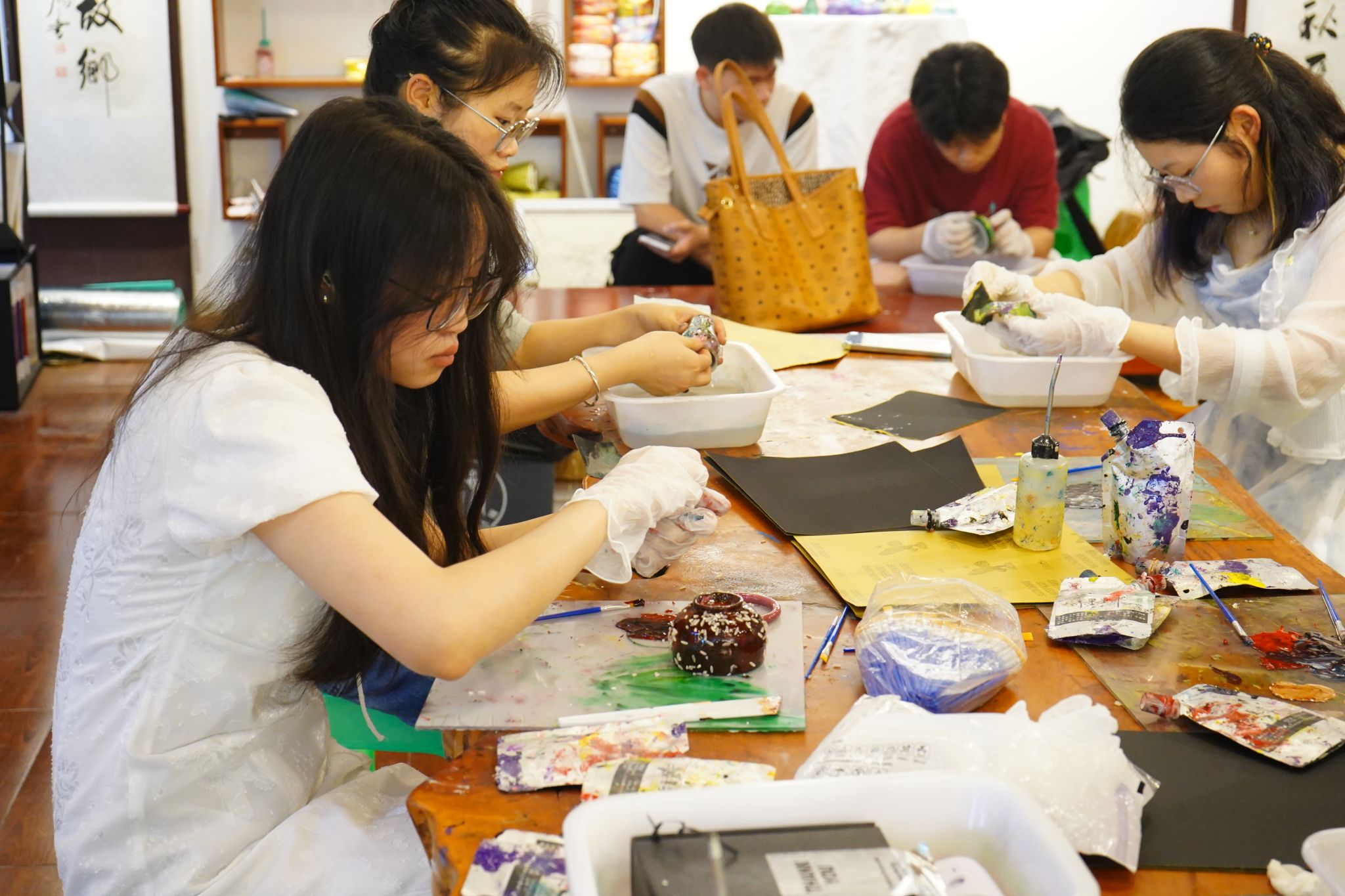 2025年6月13日,在重庆移通学院北山斋D101非遗传习基地,非物质文化遗产研究会精心打造的“髹漆承韵”非遗漆艺研修班正如浸润在古韵之中。流淌千年的东方漆艺,在这方充满创造力的空间里,徐徐铺展其温润而深邃的魅力,续写着传承与创新的篇章。