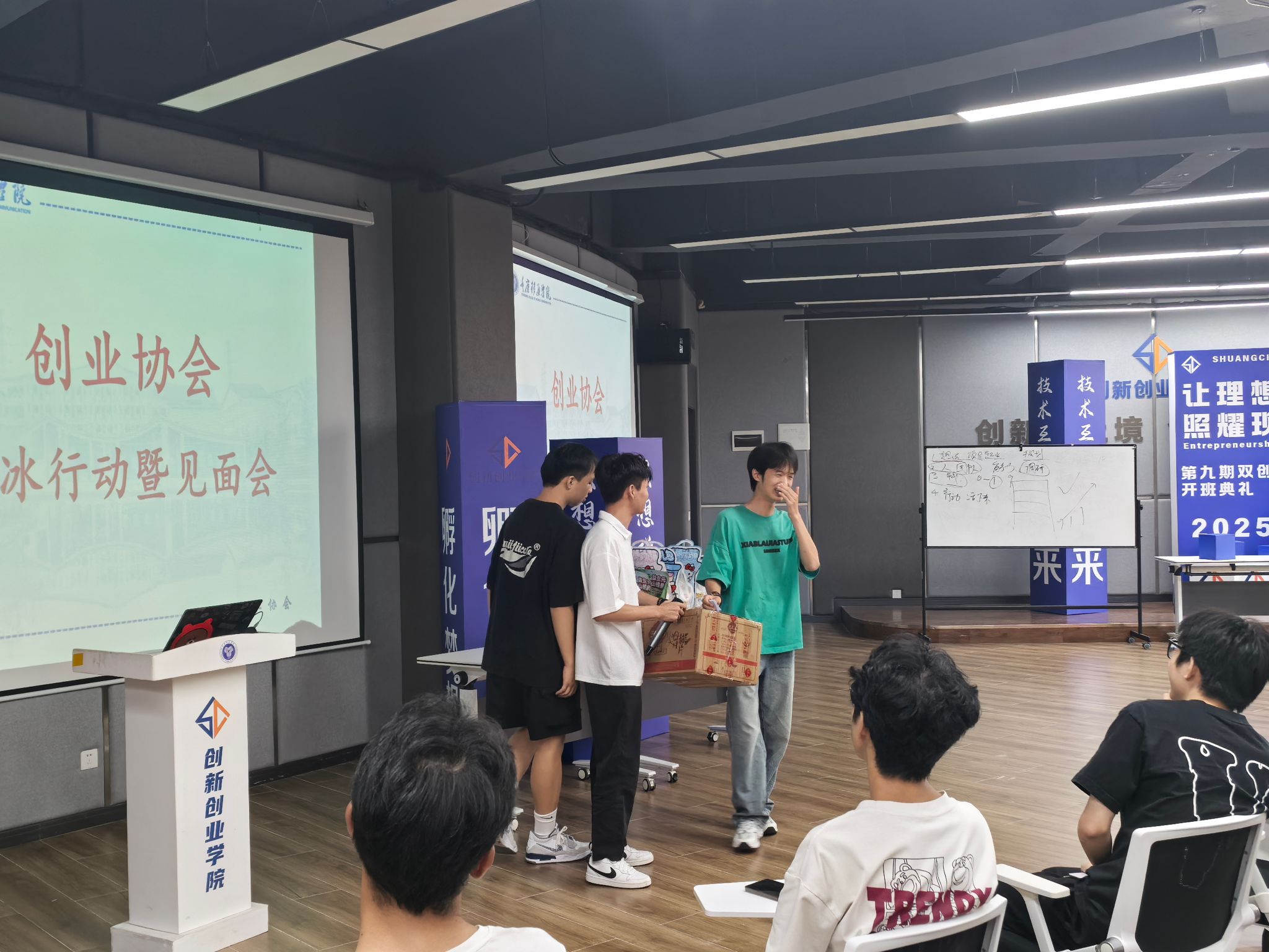 为迅速活跃现场气氛,增进彼此了解,见面会特别设置了轻松愉快的破冰环节。新成员们积极踊跃的进行了自我介绍,并抽取了由创业协会学长学姐们精心准备的纪念礼物。值得一提的是,这些礼物本身正是学长学姐创业项目的成果,这份特别的“传承”极大地激励了新成员们的创业之心。这一环节有效消除了新成员之间的陌生感,会场内充满了欢声笑语。大家或分享个人兴趣特长,或畅谈对创业的初步构想,现场交流融洽,初步建立了深厚的同侪情谊。