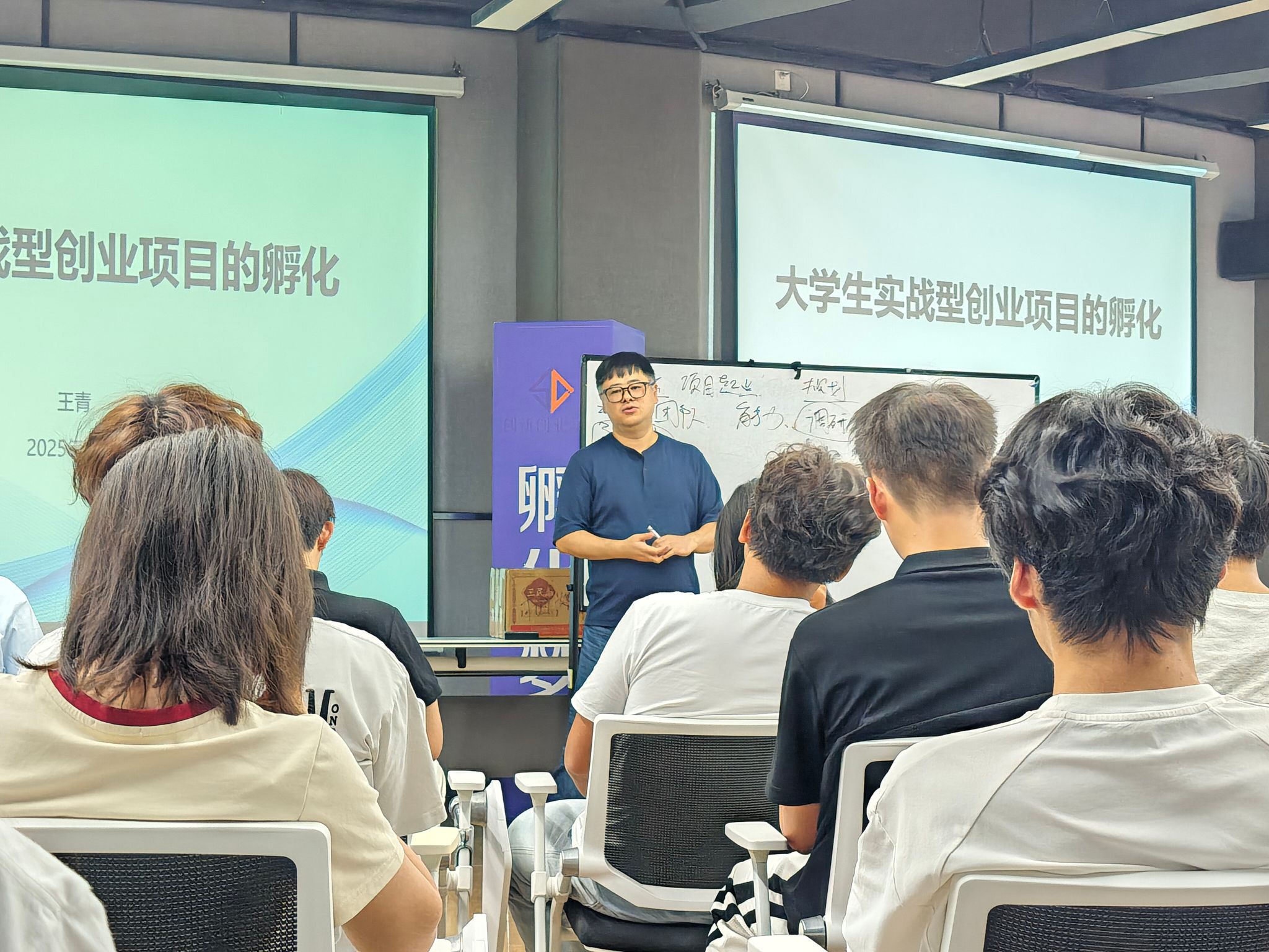 为了带领各位新成员快速了解创新创业,王青老师结合具体生动的案例,深入浅出地剖析了实体创业的关键要素。从创意想法的产生到高效的团队组建,从项目启动资金的筹备到高效执行计划进而项目存活,王青老师为有志于实体创业的同学们指明了一条务实而清晰的前进路径。随后针对有创新创业比赛想法的学生,他还讲解了项目PPT制作以及项目路演的流程方法,让同学们对创业比赛有了更直观和深刻的理解。